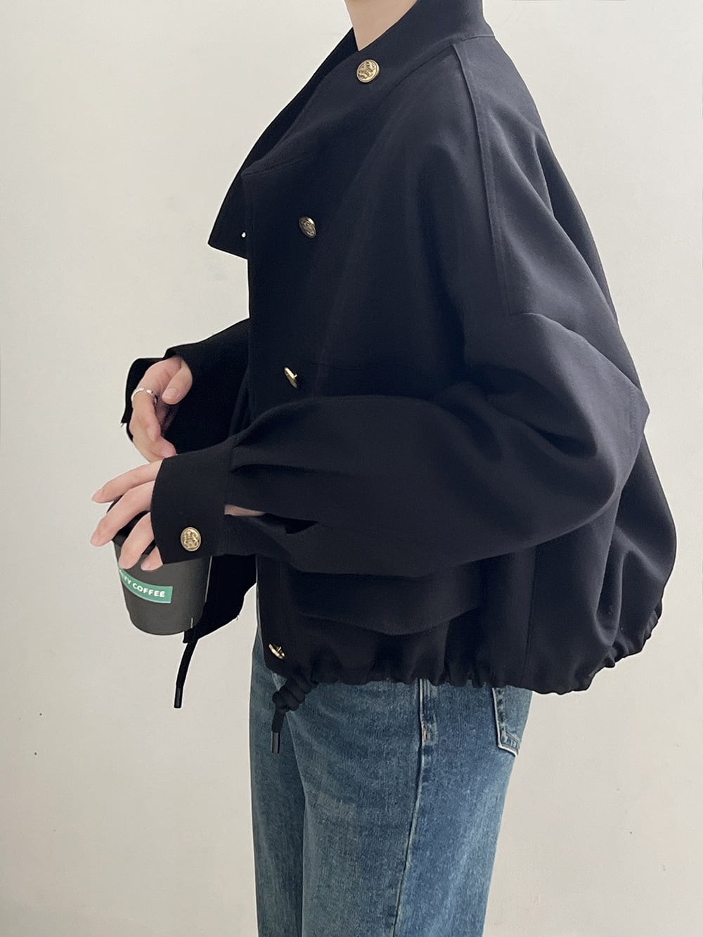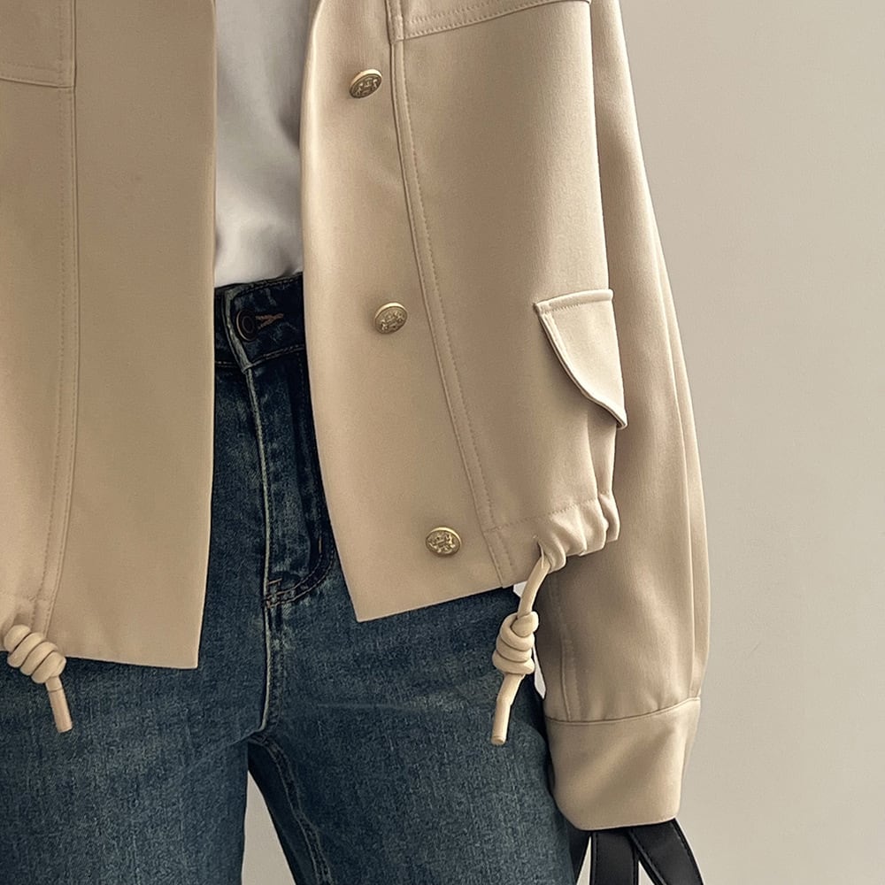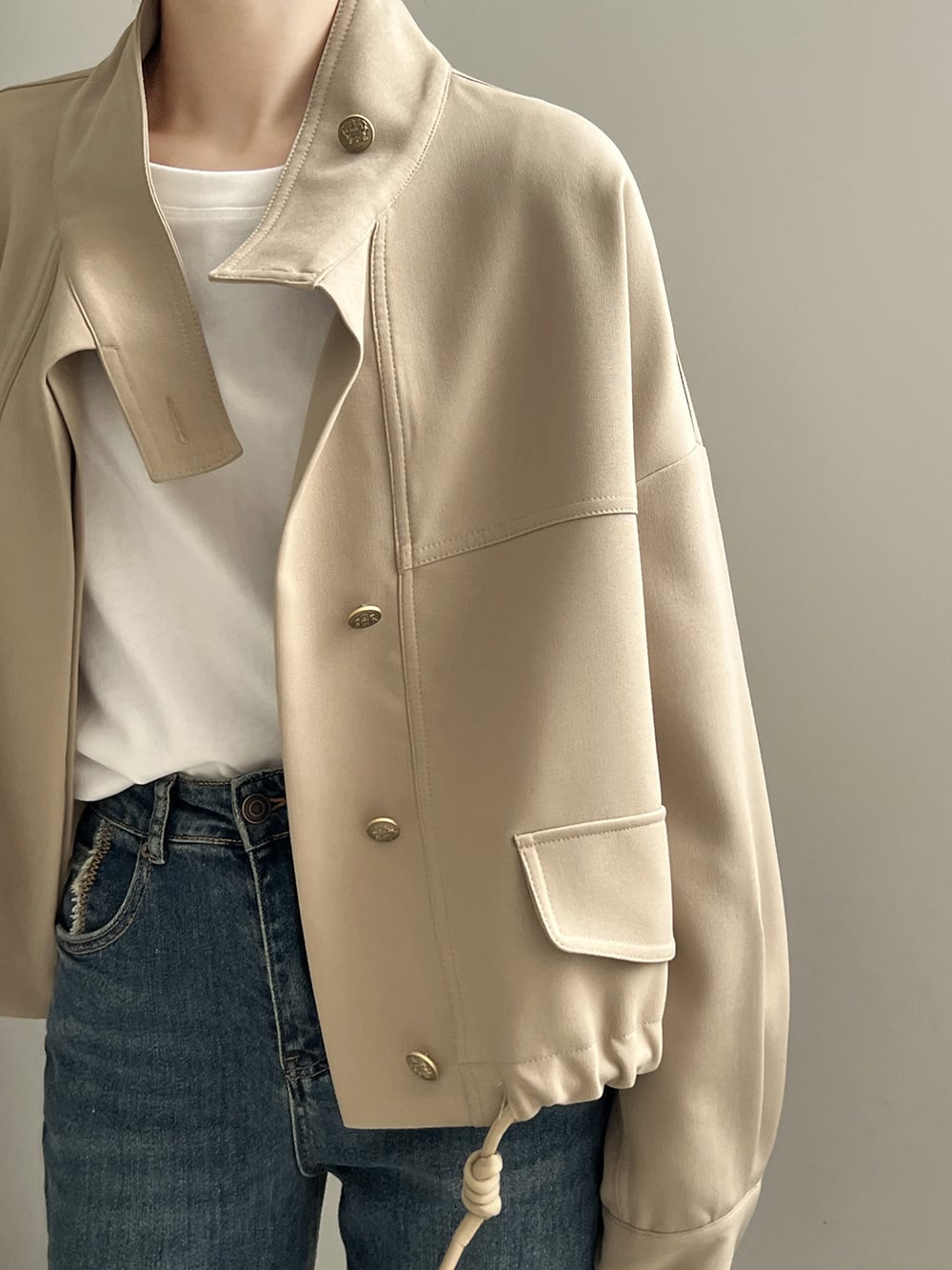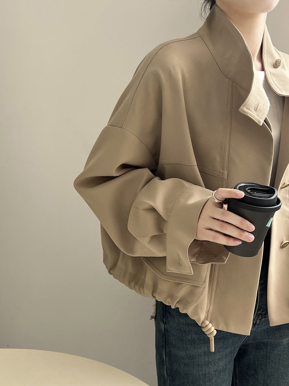 大人可愛いスタイルを演出する「スタンドカラー ドロップショルダー ジャケット」のご案内です!