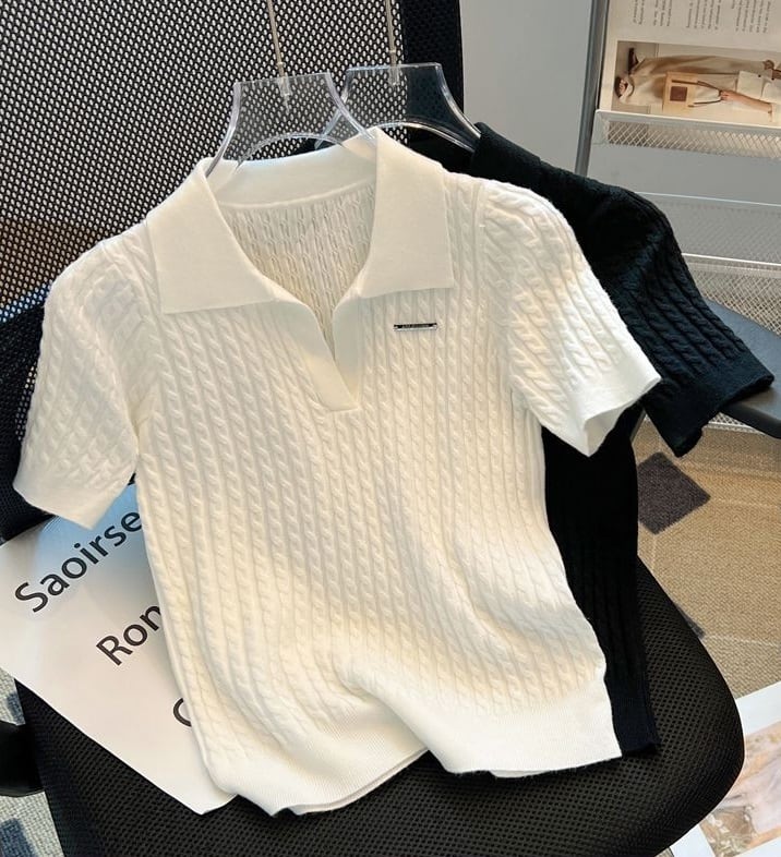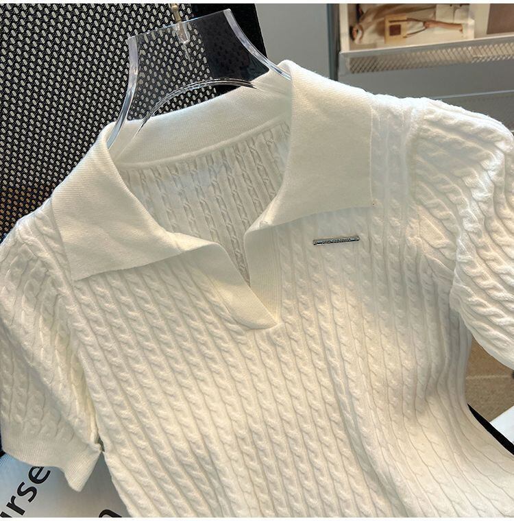 ケーブル編み 半袖 ニットセーター レディース トップス ニット セーター プルオーバー サマーニット ミディアム 半袖 襟付き スキッパー ケーブルニット 編み込み 編み上げ 伸縮性 かわいい 大人可愛い きれいめ シンプル カジュアル おしゃれ こなれ感 存在感 ロゴ 編み柄 春 夏 秋 ママ 通勤 学生 学校 通学 デート お出かけ 旅行 公園 女子会 休日 ショッピング カフェ 重ね着 普段使い 着回し レイヤード フリーサイズ 白 ホワイト 黒 ブラック