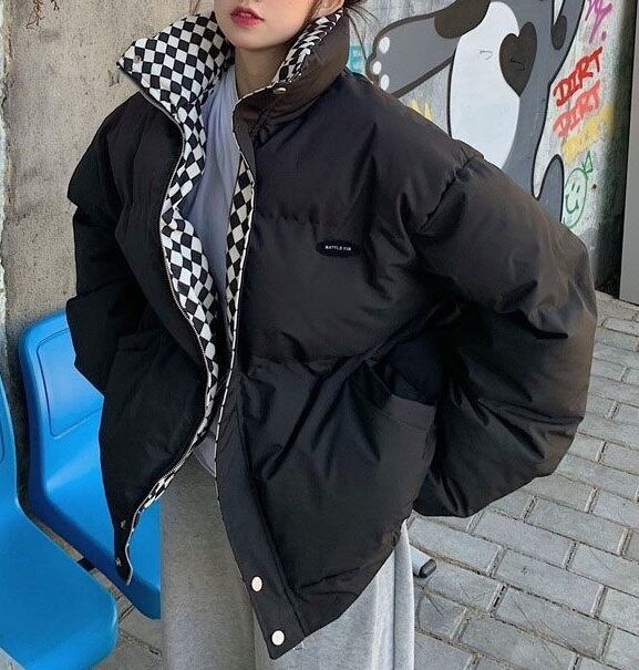 このダウンジャケットは、暖かさとおしゃれを両立させたアイテムです。裏地付きのチェッカー柄が印象的で、デザイン性が高く、普段使いや休日のお出かけにも大活躍します!ハイネックのスタンドカラーデザインが、こなれ感を演出し、シンプルながらも存在感のあるスタイルを作り出します。