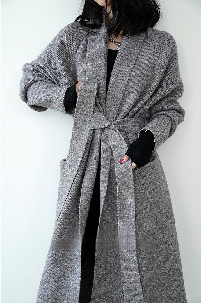 大人可愛いスタイルを実現する「腰ひも付き ロング丈 リブニットカーディガン」のご紹介です!