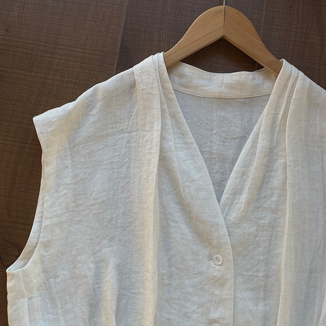 大人可愛いスタイルを演出する「コットン リネン ノースリーブ Vネック シャツブラウス」のご案内です!