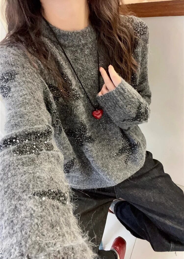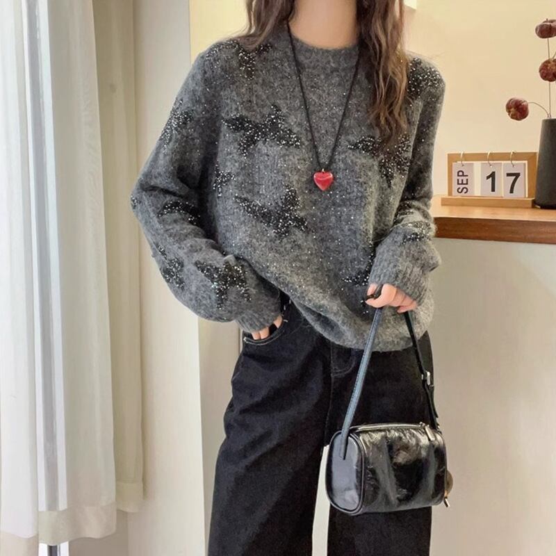 蝶柄 ラウンドネック ニットセーター レディース トップス ニット セーター プルオーバー ミディアム 長袖 ラウンドネック 襟なし ふわふわ リブ かわいい 大人可愛い きれいめ カジュアル おしゃれ こなれ感 ルーズ 主役級 存在感 蝶 春 秋 冬 ママ 通勤 学生 学校 通学 デート お出かけ 旅行 公園 女子会 休日 ショッピング カフェ 重ね着 暖かい 体型カバー 普段使い 着回し レイヤード ゆったり ゆる フリーサイズ グレー