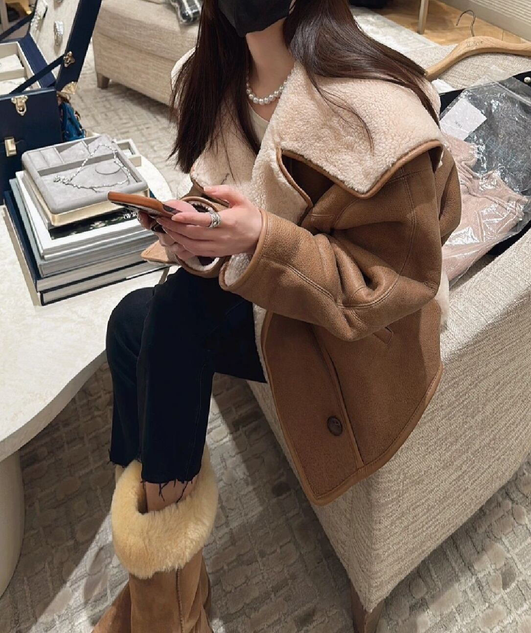 このムートンジャケットコートは、ふわもこした質感が特徴で、大人可愛い印象を与えます。丈長のミディアムスタイルなので、春、秋、冬のシーズンにぴったり。前開きのデザインで、簡単に着脱可能なので、通勤やデート、休日のお出かけにもおすすめです♪ポケット付きで、実用性も完璧!カジュアルからきれいめまで幅広いコーディネートが楽しめます。