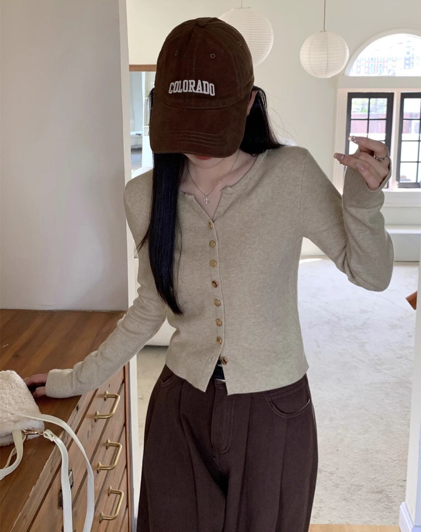 ゴールドボタン スキッパー ニットカーディガン レディース トップス ニット カーディガン 羽織 ミディアム 長袖 キーネック 襟なし スリム 細身 リブ 前開き リブニット ボタン かわいい 大人可愛い きれいめ シンプル カジュアル 上品 おしゃれ こなれ感 存在感 無地 春 秋 冬 ママ 通勤 学生 学校 通学 デート お出かけ 旅行 公園 女子会 休日 ショッピング カフェ 重ね着 普段使い 着回し レイヤード フリーサイズ 黒 ブラック カーキ アプリコット