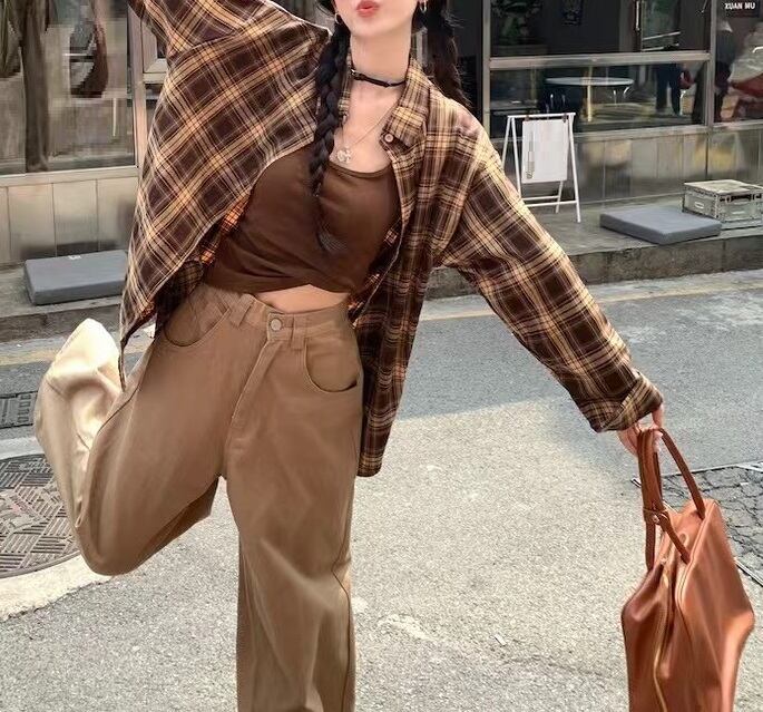 このチェック柄 長袖 シャツは、春、夏、秋、冬のあらゆるシーズンにぴったりの、おしゃれで可愛いアイテムです!羽織りや重ね着としても活用できるミディアム丈と、ドロップショルダーのリラックスしたデザインが特徴で、大人可愛い印象を与えます。オーバーサイズでゆったりしたシルエットは体型カバーにも最適♪通勤や学校、女子会、デート、お出かけなど幅広く活躍すること間違いなしです!