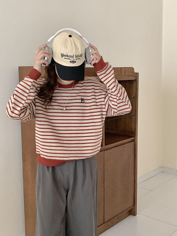 このボーダー柄 ラウンドネック トレーナーは、春から冬まで幅広く活躍するアイテムで、シンプルでありながら大人可愛いスタイルを楽しむことができます!バイカラー配色が特徴的で、カジュアルなおしゃれを演出。長袖のデザインとラウンドネックが心地よさを提供し、体型をカバーするゆったりとしたシルエットで、日常使いや通勤、学生生活、デートやお出かけに最適な一着です♪