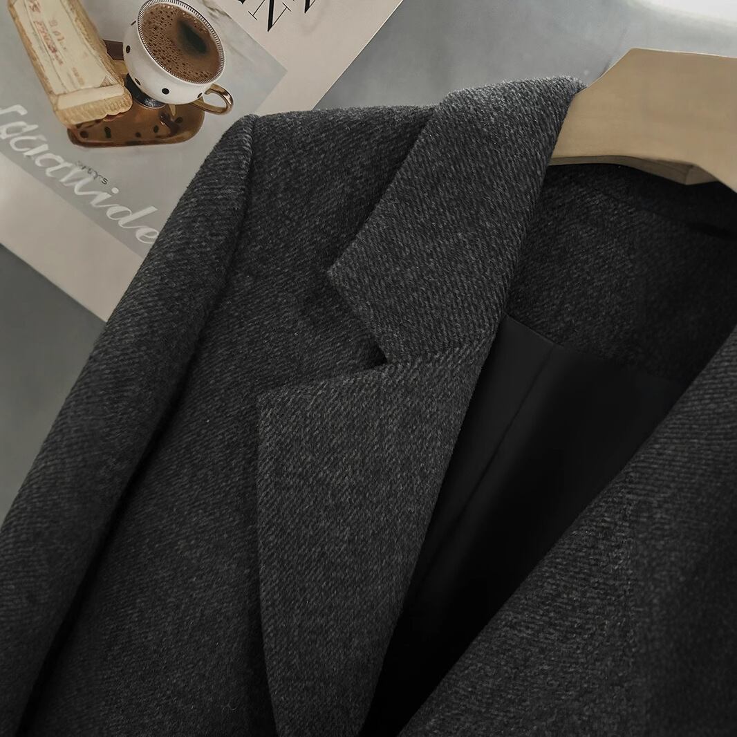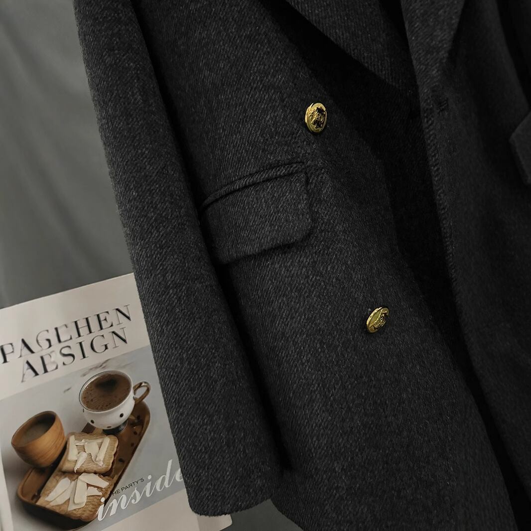 オーバーサイズ 長袖 ウール テーラードジャケット レディース トップス ジャケット アウター 上着 羽織 丈長 ミディアム 長袖 Vネック 襟付き ポケット 前開き ボタン ゴールドボタン ウール かわいい 大人可愛い きれいめ シンプル カジュアル 上品 おしゃれ こなれ感 ルーズ 無地 春 秋 冬 授業参観 ママ オフィス 通勤 学生 学校 通学 デート お出かけ 旅行 公園 女子会 休日 ショッピング カフェ 重ね着 暖かい 体型カバー 普段使い 着回し S M L XL ゆったり ダークグレー