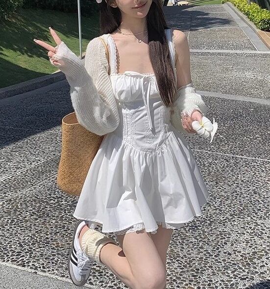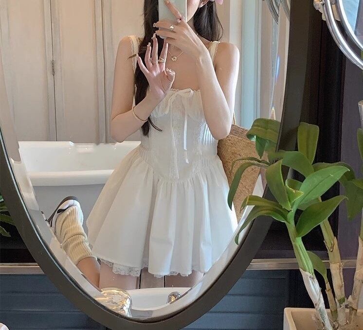 フロントリボン レース ミニ丈 キャミソールワンピース レディース ワンピース サマーワンピ キャミワンピ ミニ 膝上 袖なし ノースリーブ スクエアネック 襟なし スリム 細身 Aライン 切り替え フェミニン フリル ハイウエスト 伸縮性 シャーリング かわいい 大人可愛い シンプル カジュアル おしゃれ ガーリー 主役級 ラブリー キュート 花柄 フラワー 春 夏 秋 ママ 通勤 学生 学校 通学 デート お出かけ 旅行 公園 女子会 休日 バカンス 普段使い 着回し S M L XL 白 ホワイト