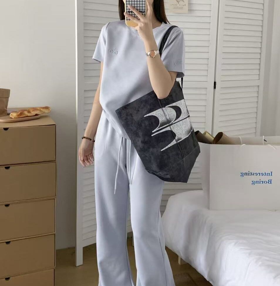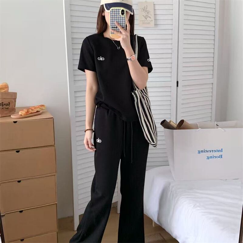 セットアップ 半袖 Tシャツ ロングパンツ 2点セット 上下セット レディース トップス パンツ ボトムス ルームウェア カットソー 部屋着 ロング ラウンドネック 刺繍 ポケット ハイウエスト ウエストゴム かわいい 大人可愛い シンプル カジュアル おしゃれ ラフ スポーティー 無地 ロゴ 春 夏 秋 冬 ママ 学生 学校 部活 デート お出かけ 旅行 休日 重ね着 体型カバー 脚長 普段使い 着回し M L XL ゆったり 白 ホワイト 黒 ブラック ライトグレー 黄色 イエロー 水色 ライトブルー