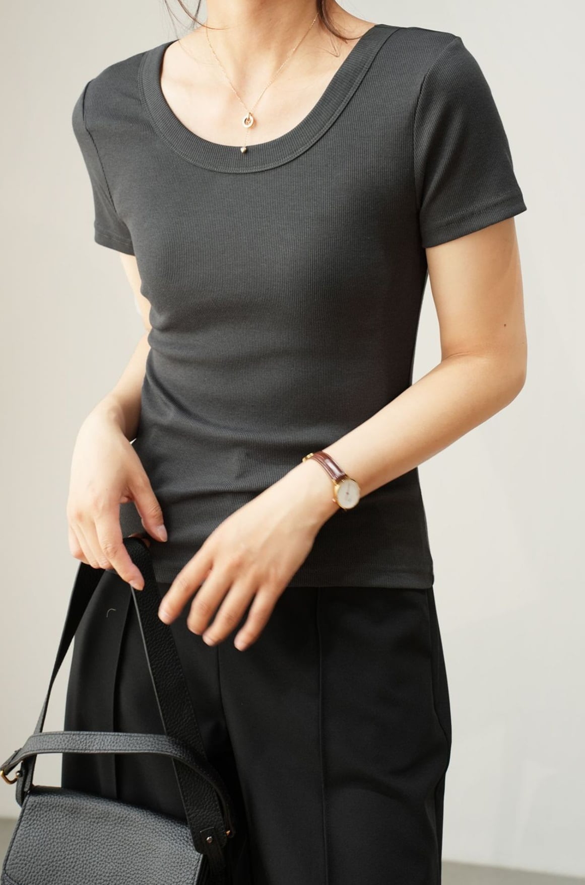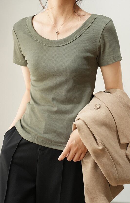 このアイテムは、春夏秋冬に対応したベーシックなデザインの半袖ラウンドネックTシャツです。襟なしのシンプルなスタイルが大人可愛い印象を与え、リブ加工と伸縮性に優れた素材で快適な着心地を実現しました。カジュアルながらきれいめな雰囲気も持ち合わせており、通勤やお出かけ、デート、学生の通学、さらには休日のショッピングやカフェなど、幅広いシーンで活躍間違いなしの一着です!