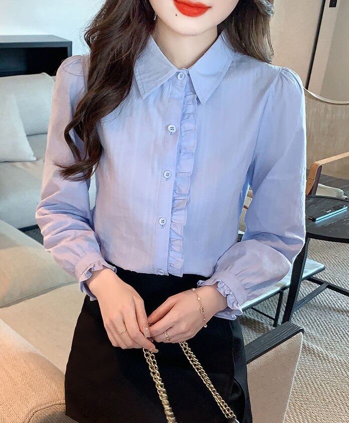 このシャツは、フェミニンなフリル袖と角襟が特徴で、シンプルながらもおしゃれな印象を与えます。長袖のデザインは、春、秋、冬と幅広いシーズンに活躍すること間違いなし!カジュアルな日常使いはもちろん、授業参観や会議、デート、さらにはオフィスでの通勤スタイルにも重宝する一枚です。薄手と厚手の2タイプから選べるので、シーンに応じたコーディネートを楽しめます!
