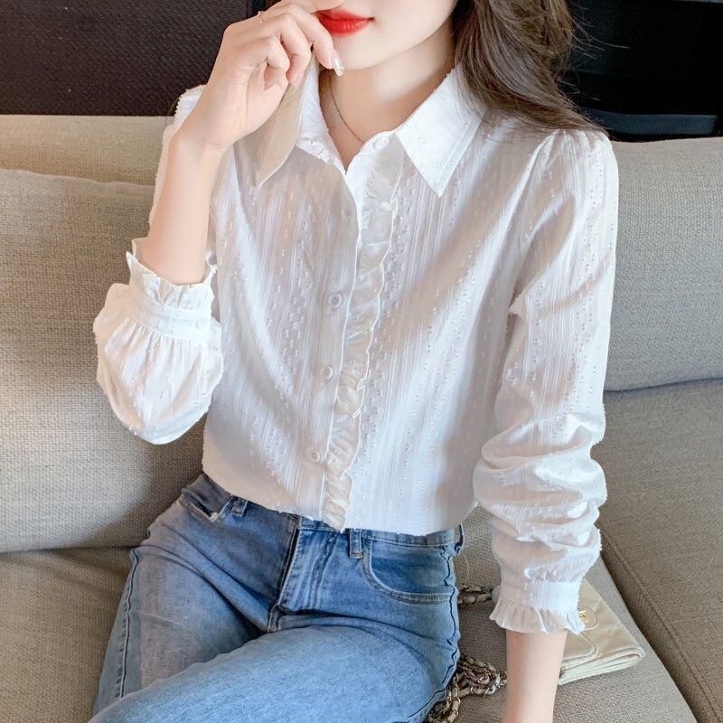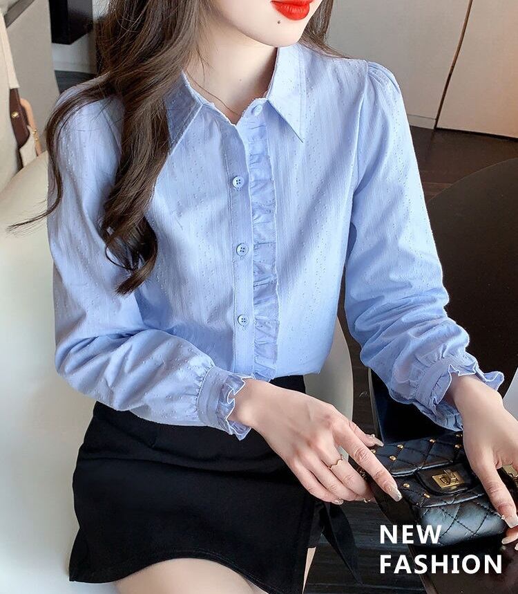 2タイプ フリル 長袖 シャツ レディース トップス ブラウス ミディアム 長袖 フリル袖 襟付き 角襟 フェミニン フリル 前開き ボタン 薄手 厚手 裏起毛 かわいい 大人可愛い きれいめ シンプル カジュアル 上品 おしゃれ ガーリー 主役級 エンボス 春 秋 冬 授業参観 会議 MTG プレゼン ママ オフィス OL 通勤 学生 学校 通学 デート お出かけ 旅行 公園 女子会 休日 ショッピング 重ね着 普段使い 着回し レイヤード S M L XL 2XL 大きいサイズ 白 ホワイト ブルー