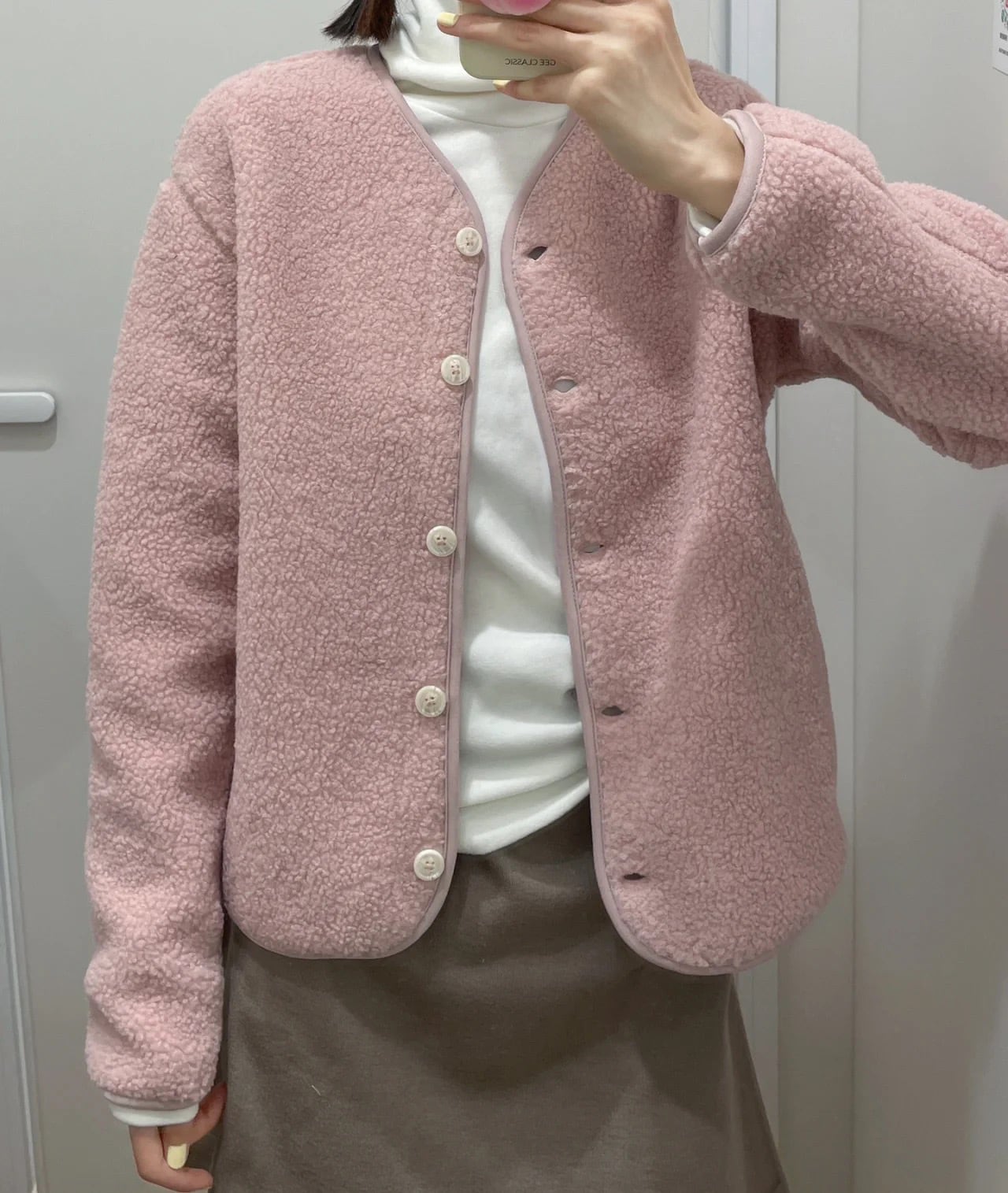 ノーカラー ショート ボアジャケット コート レディース トップス ジャケット アウター 上着 羽織 ノーカラーコート ショート 長袖 ラウンドネック 襟なし ノーカラー ポケット 前開き ボタン ボア 厚手 かわいい 大人可愛い きれいめ シンプル カジュアル 上品 おしゃれ 存在感 無地 春 秋 冬 ママ 通勤 学生 学校 通学 デート お出かけ 旅行 公園 女子会 休日 重ね着 暖かい 体型カバー 普段使い 着回し S M L XL 黒 ブラック ピンク オートミール 花グレー ミルキーホワイト