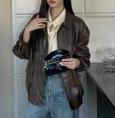 おしゃれで大人可愛いオーバーサイズジップアップレザージャケットが新登場!シンプルでカジュアルなデザインは、春・秋・冬の季節にぴったりのアウターです。通勤や通学、お出かけやデート、旅行にも活躍できるアイテムです。