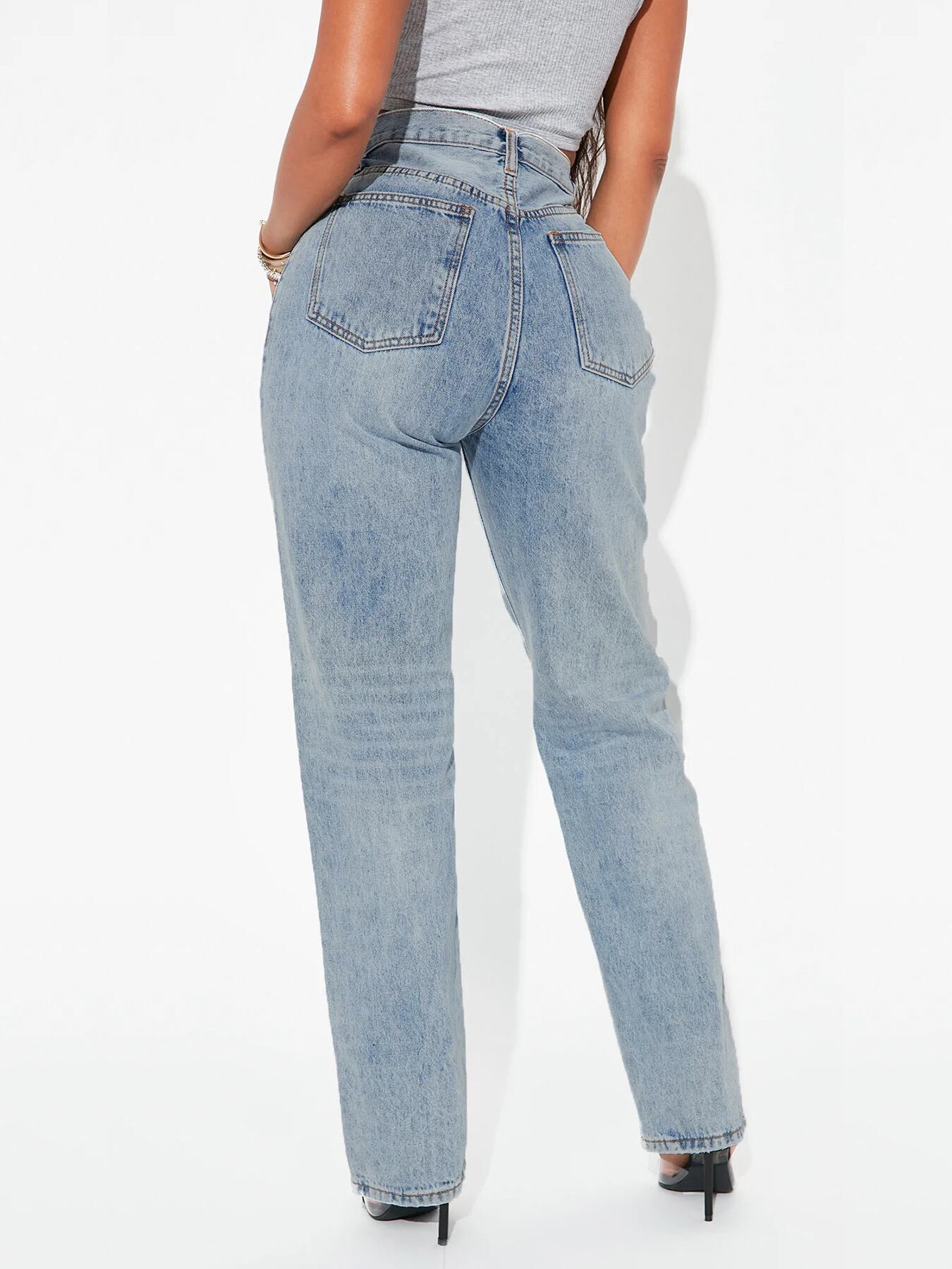 こちらのデニムパンツは、トレンド感満載のウエストクロスデザインがポイント!ハイウエストのテーパードシルエットが美脚効果を引き出し、スタイルをより魅力的に見せてくれます。軽やかなライトブルーは春夏のコーディネートにぴったりで、シンプルながらもこなれた印象を与えてくれます。カジュアルにもきれいめにも合わせやすいので、通勤やデート、休日のお出かけまで幅広く活躍します!