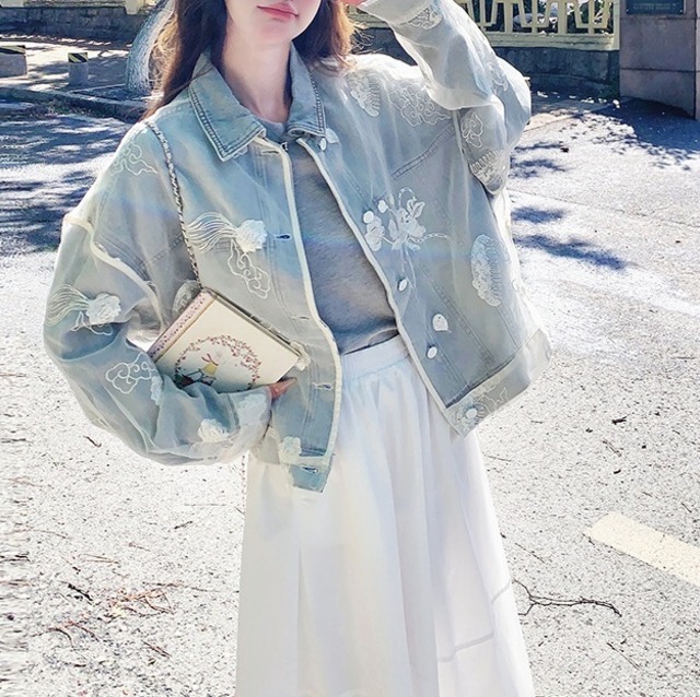 花柄 刺繍 レース オーバーサイズ デニムジャケットのご紹介です!