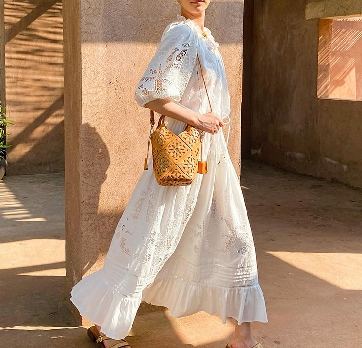 透かし編みレースのセットアップ、ブラウスとロングスカートの2点セットが登場です!