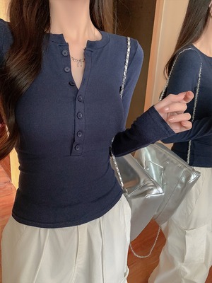 ハーフボタン スリム 長袖 ロンT レディース トップス カットソー プルオーバー インナー 丈長 ミディアム 長袖 ラウンドネック ボタンダウン スリム 細身 リブ ボタン かわいい 大人可愛い きれいめ シンプル カジュアル おしゃれ こなれ感 ベーシック 無地 春 秋 冬 ママ 通勤 学生 学校 通学 デート お出かけ 旅行 公園 女子会 休日 ショッピング カフェ 重ね着 普段使い 着回し S M L XL 黒 ブラック グレー アプリコット ネイビー