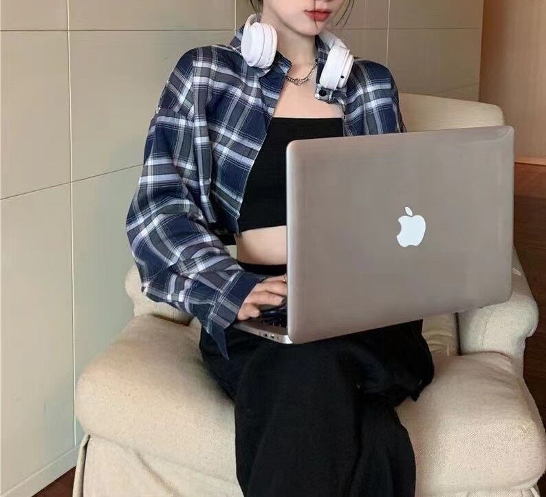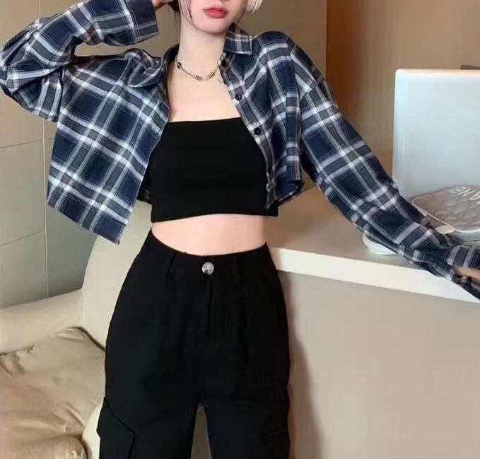 ショート丈 チェック柄 長袖 シャツ レディース トップス シャツ 上着 羽織 ショート ドロップショルダー 襟付き オーバーサイズ ストリート へそ出し 前開き ボタン かわいい 大人可愛い シンプル カジュアル おしゃれ かっこいい こなれ感 メンズライク ボーイッシュ ルーズ 個性的 チェック 格子柄 春 秋 冬 ママ 通勤 学生 学校 通学 デート お出かけ 旅行 公園 女子会 休日 重ね着 体型カバー 普段使い 着回し S M L XL 2XL 大きいサイズ ゆったり 黒 ブラック ブルー