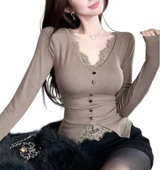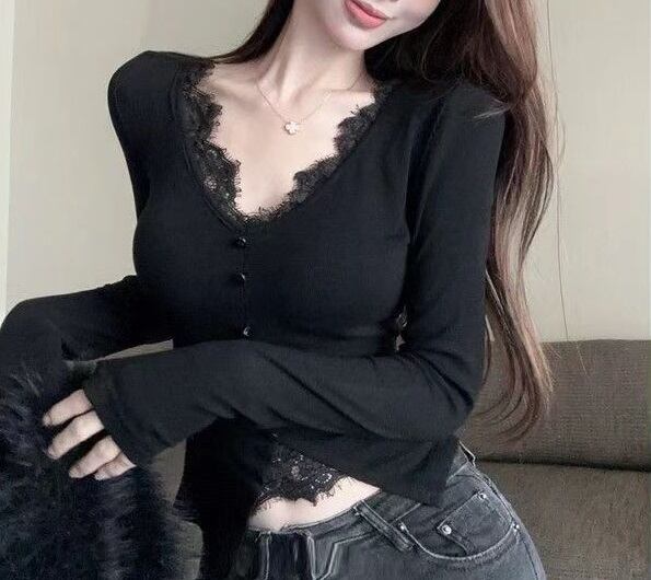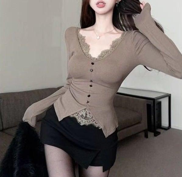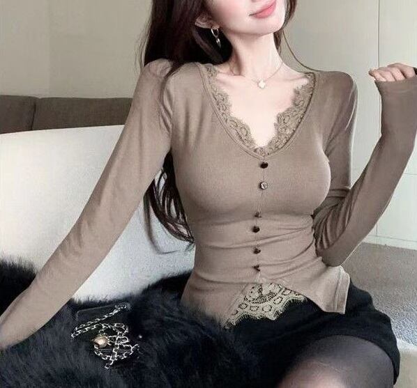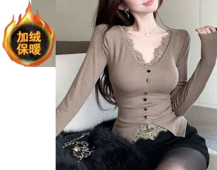 このトップスは、デリケートなレースをあしらったVネックデザインが特徴で、大人可愛い雰囲気を醸し出します。伸縮性のあるスパンデックス素材を使用しているため、着心地も抜群です。スリムなシルエットと裏起毛仕様で、暖かさも兼ね備えています。普段使いや通勤、学校、デート、お出かけなど、さまざまなシーンで活躍すること間違いなし!春、秋、冬にもぴったりなアイテムで、重ね着コーデにも最適です。