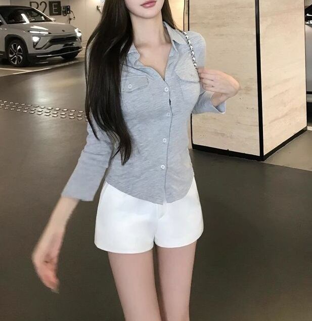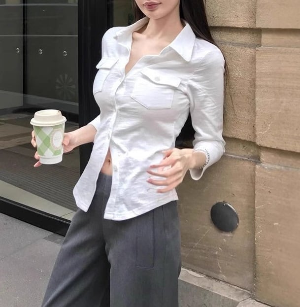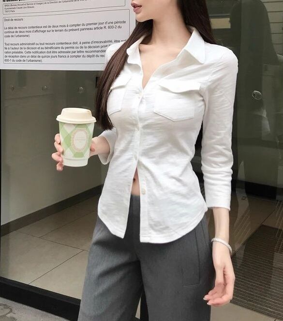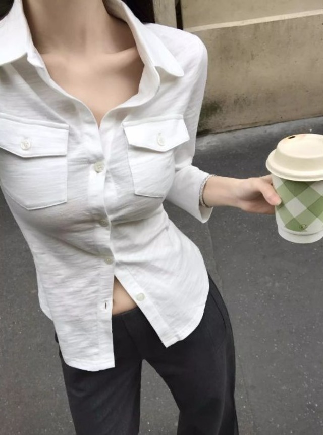 このシャツは、ショート丈とスリムなシルエットが魅力的で、着るだけで大人可愛い佇まいを演出します。軽やかで柔らかなコットン素材を使用し、肌触りは抜群です。前開きのボタンデザインと角襟がポイントで、シンプルながらもおしゃれな印象を与えます。春から秋までの季節にぴったりで、通勤や学校、デート、お出かけなど、さまざまなシーンで活躍すること間違いなし!カジュアルなスタイルにも、きれいめなコーデにも合わせやすく、普段使いや重ね着にも重宝します。
