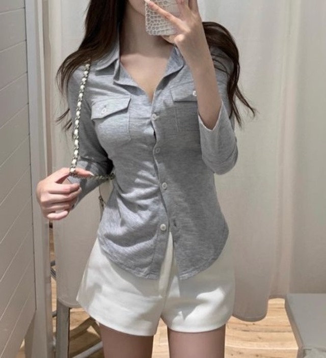 ショート丈 スリム 七分袖 コットン シャツのご紹介です!