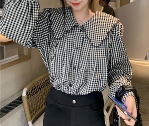 大きめ襟 チェック柄 長袖 シャツ ブラウスのご紹介です!