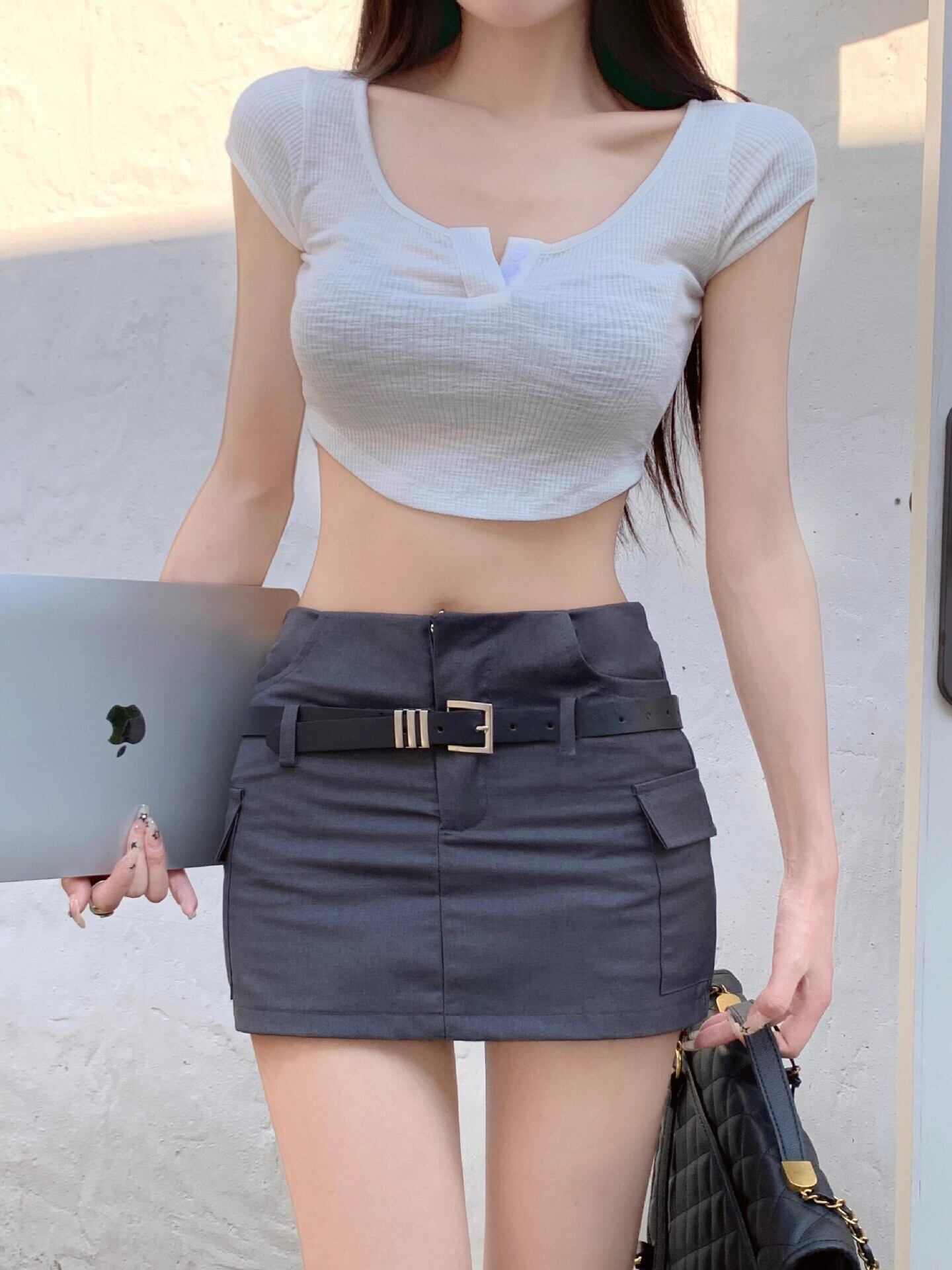 ベルト付き ハイウエスト タイト ミニスカートのご紹介です!