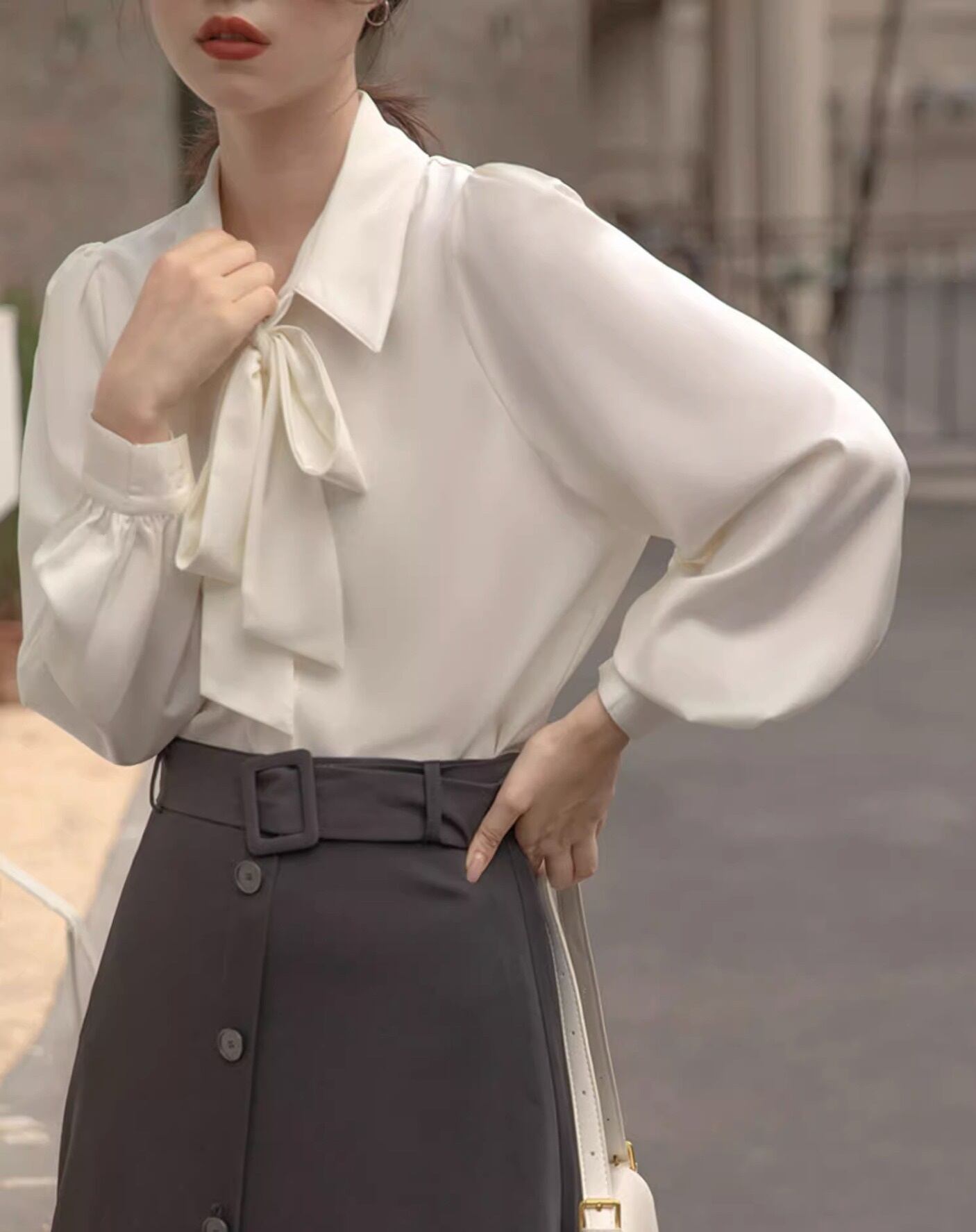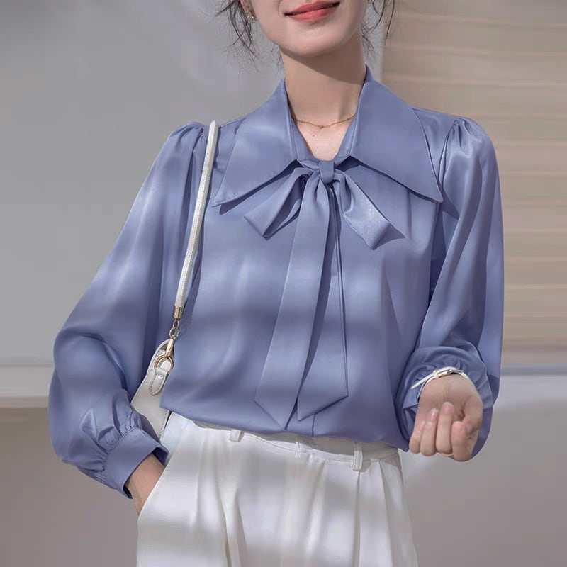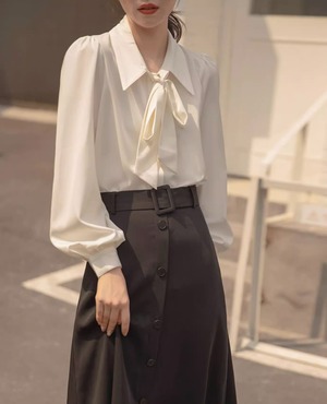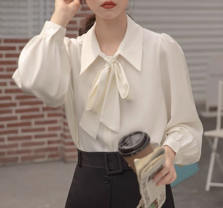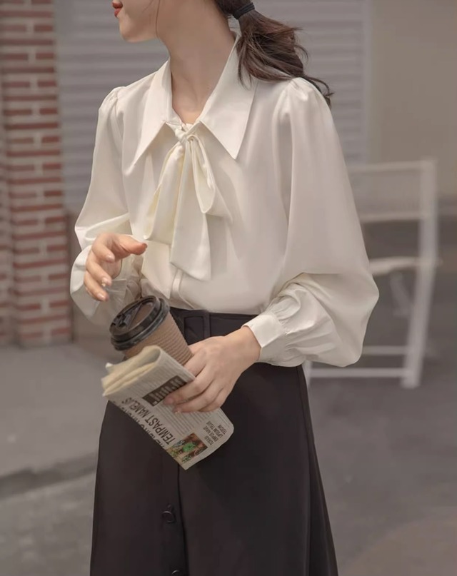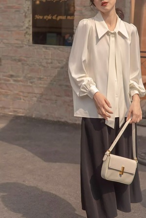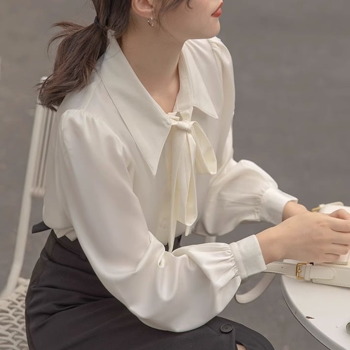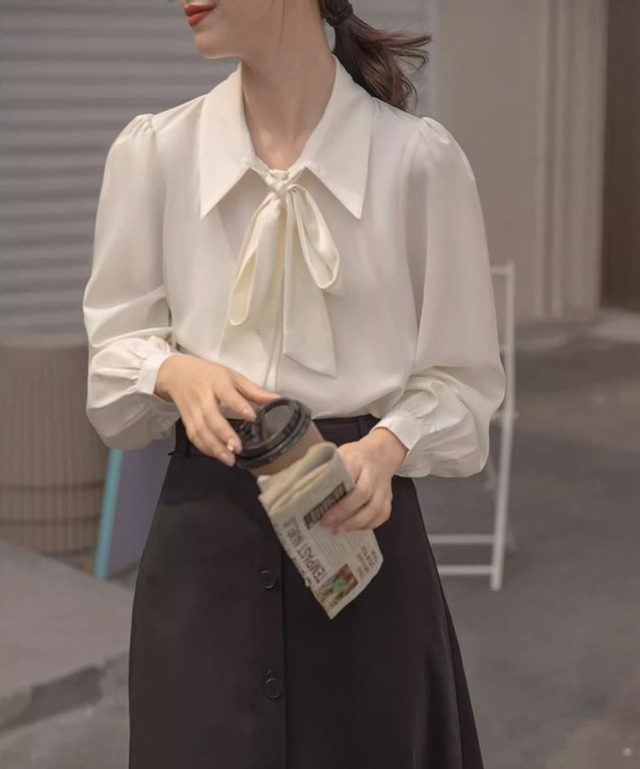 このシャツは、可愛らしさと上品さを兼ね備えたデザインが特徴で、ボウタイリボンが優雅な印象を与えます。長袖と半袖の2タイプからお選びいただけ、季節を問わずコーディネートが楽しめます。パフスリーブが女性らしさを引き立て、シンプルながらも存在感があります。前開きのボタン仕様で着脱も楽々!フォーマルなシーンからカジュアルなお出かけまで、幅広いシーンで活躍間違いなしのアイテムです。