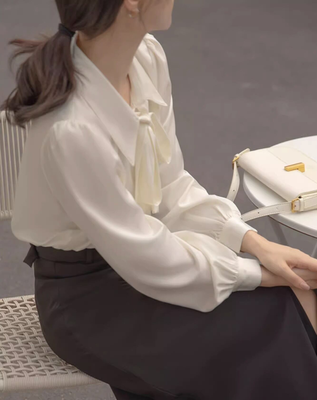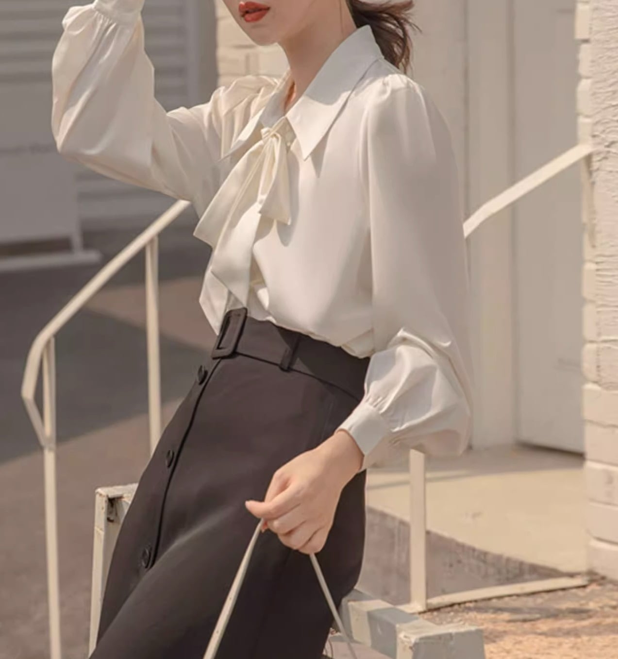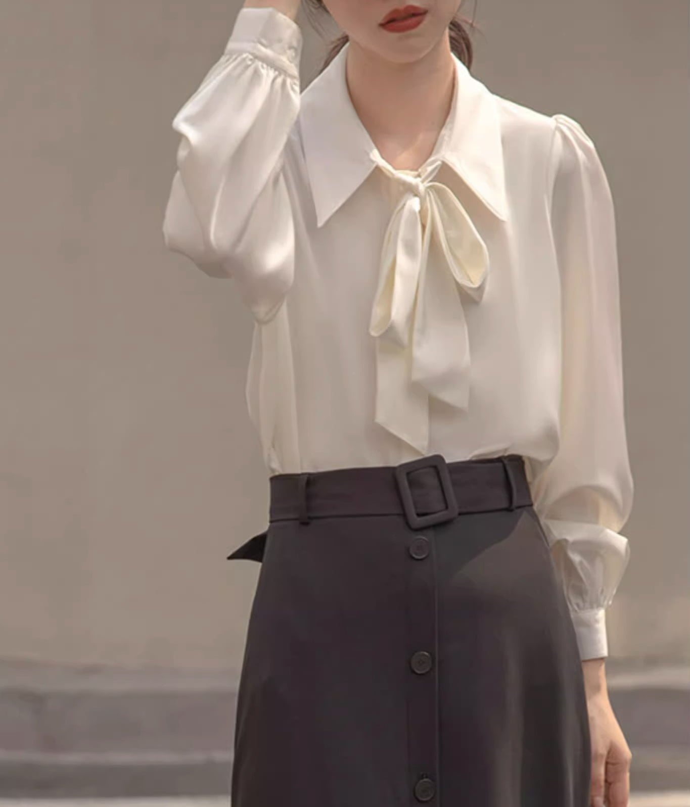 このシャツは、可愛らしさと上品さを兼ね備えたデザインが特徴で、ボウタイリボンが優雅な印象を与えます。長袖と半袖の2タイプからお選びいただけ、季節を問わずコーディネートが楽しめます。パフスリーブが女性らしさを引き立て、シンプルながらも存在感があります。前開きのボタン仕様で着脱も楽々!フォーマルなシーンからカジュアルなお出かけまで、幅広いシーンで活躍間違いなしのアイテムです。