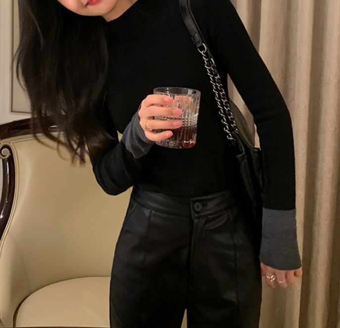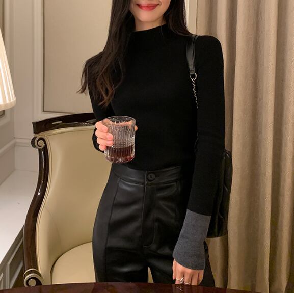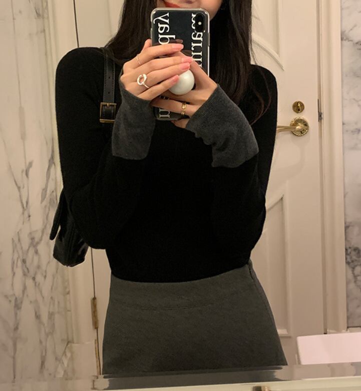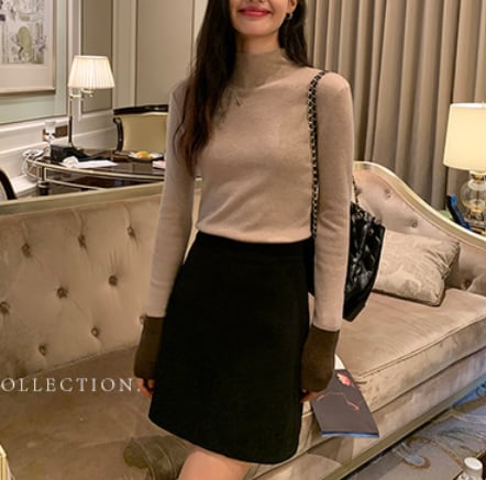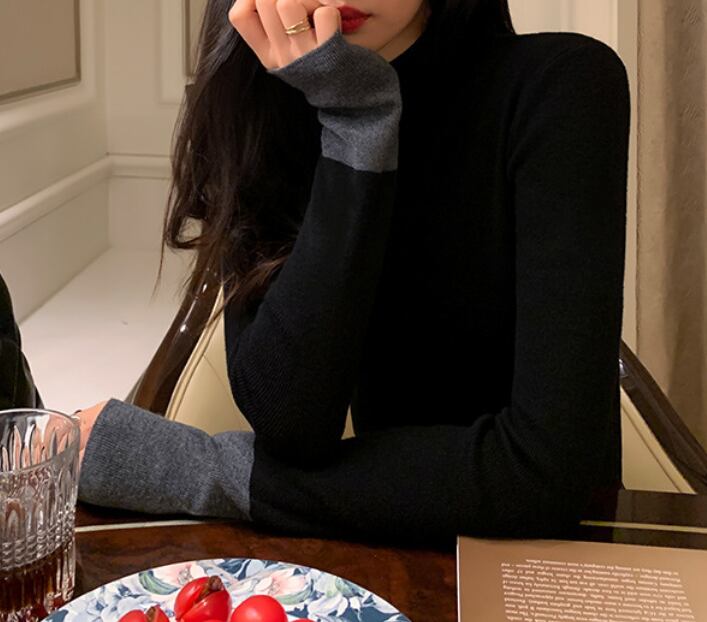 半ハイネック バイカラー スリム ニットセーターのご紹介です!