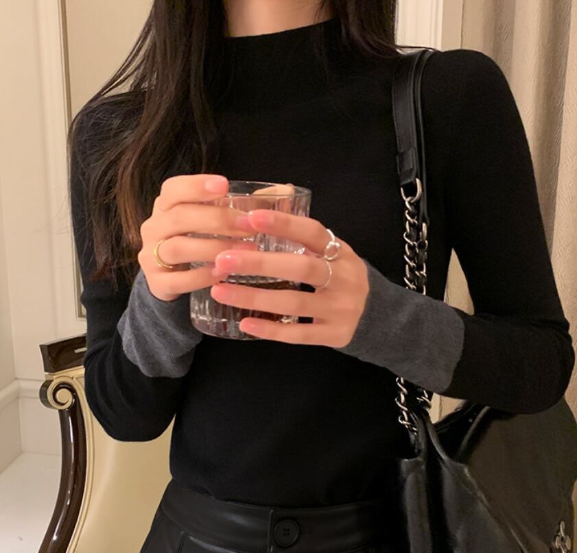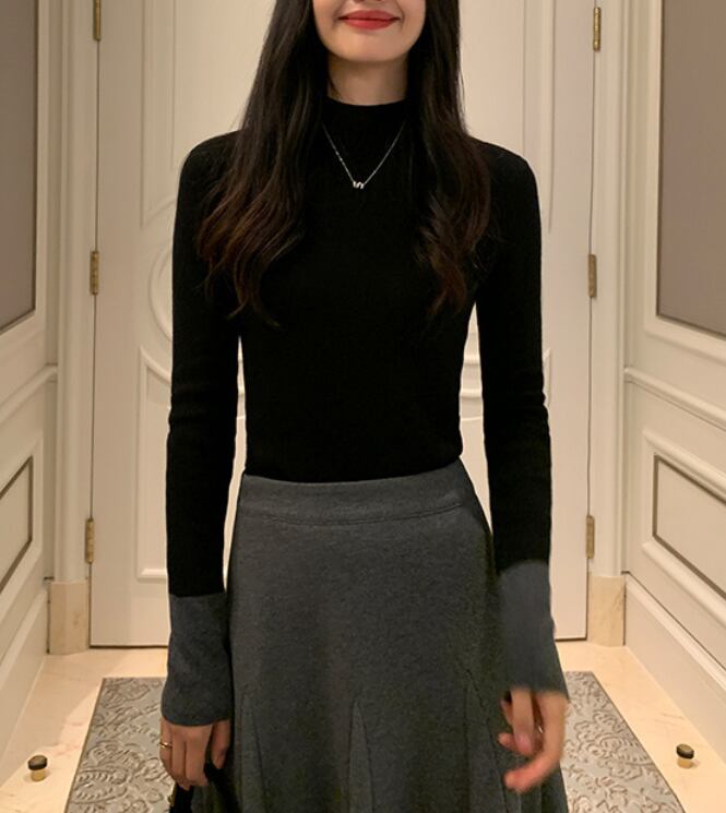 このニットセーターは、トレンドを取り入れた半ハイネックデザインとバイカラー配色が特徴で、シンプルながらもおしゃれな印象を与えます。スリムなシルエットで体のラインを美しく引き立てるため、大人可愛いコーディネートにぴったりです。両袖にはリブ編みが施されており、可愛らしさと上品さを兼ね備えています。日常使いや通勤、デート、お出かけなど様々なシーンでの着回しができる万能アイテムです!
