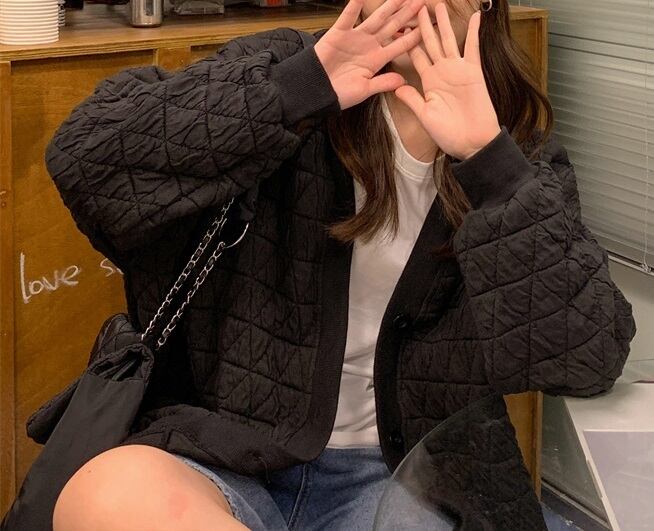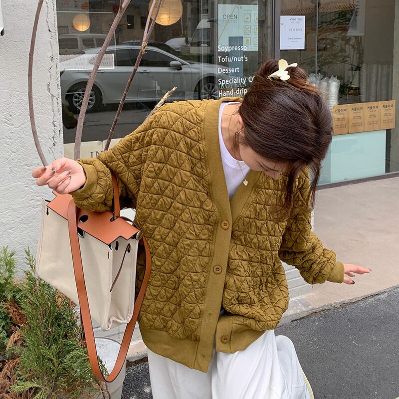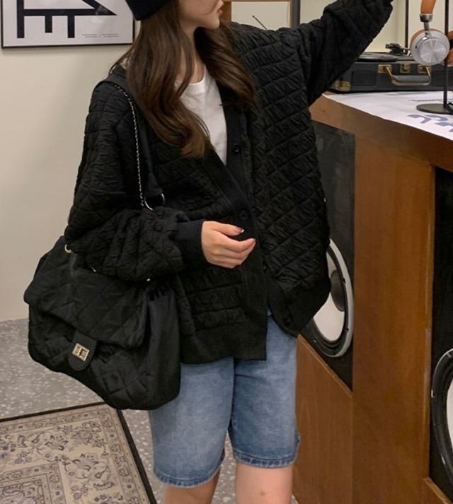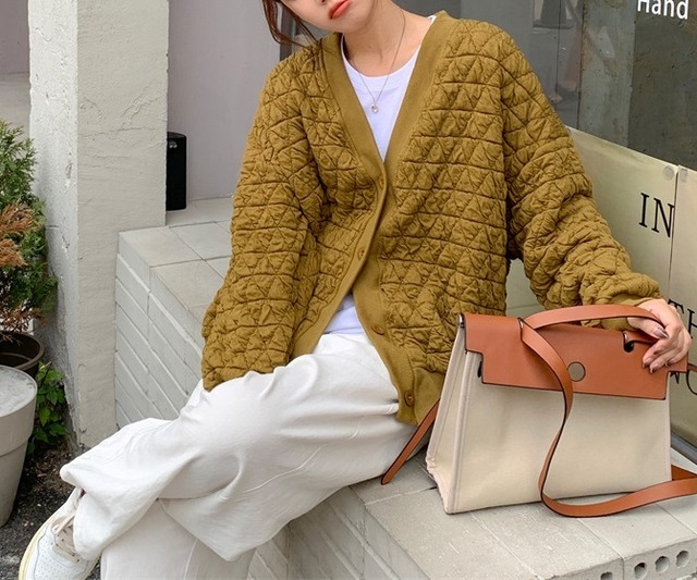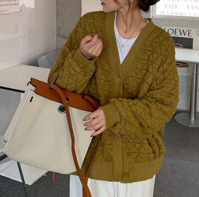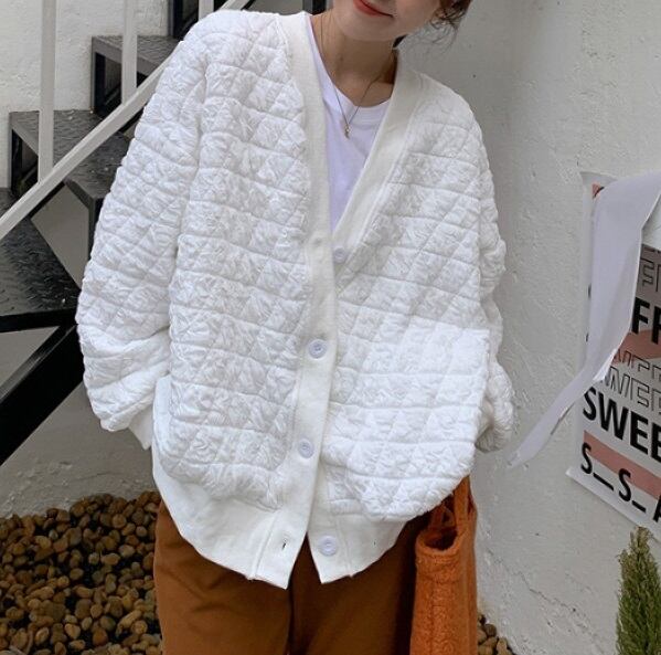 シンプルでかわいいVネック キルティング 長袖 カーディガンのご紹介です!