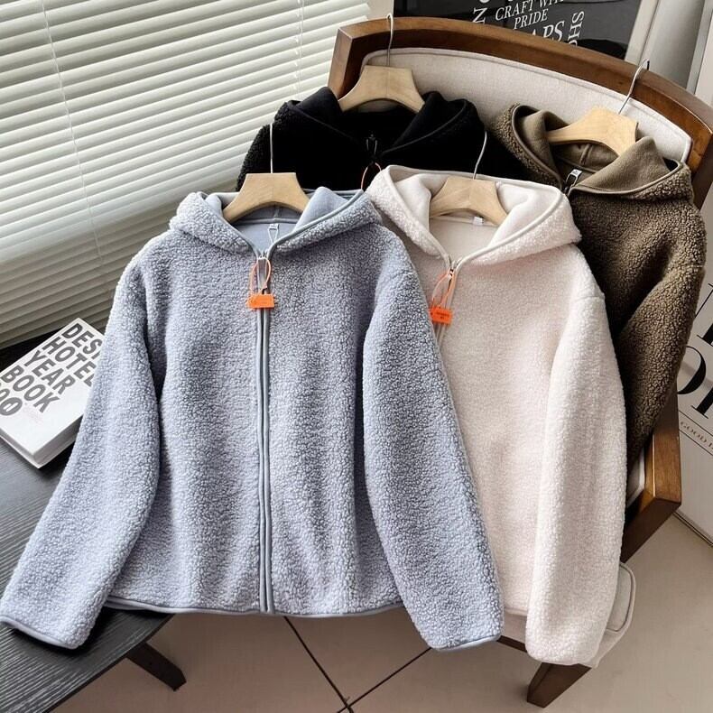 フード付き もこもこ ボアジャケット レディース トップス ジャケット アウター 上着 羽織 ミディアム 長袖 フード ふわふわ ファスナー ポケット 前開き ジッパー チャック ボア かわいい 大人可愛い シンプル カジュアル おしゃれ こなれ感 無地 春 秋 冬 ママ 通勤 学生 学校 通学 デート お出かけ 旅行 公園 女子会 休日 ショッピング カフェ 重ね着 暖かい 防寒 体型カバー 普段使い 着回し レイヤード S M L XL ゆったり 黒 ブラック 茶色 ブラウン オフホワイト ブルー
