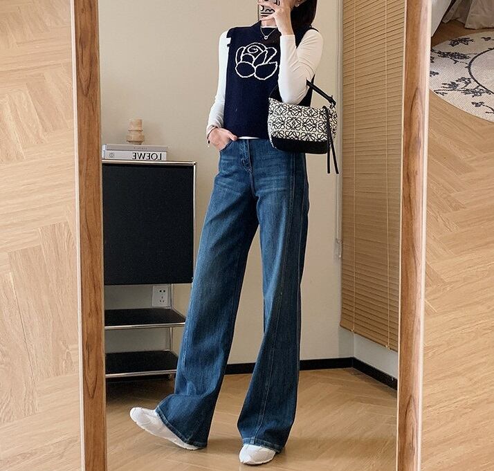 このハイウエスト ワイド デニムパンツは、通常生地と裏起毛の2種類のデザインから選べる魅力的なアイテムです。ハイウエスト仕様で、しっかりとした生地感とゆったりとしたシルエットが特徴。ブーツカットのデザインが大人可愛いスタイルを演出しつつ、美脚効果も期待できるため、普段使いからデート、お出かけ、通勤や学校シーンまで、幅広く活躍すること間違いなしです!ご自身のスタイルに合わせて2タイプの生地からお選びいただけます。