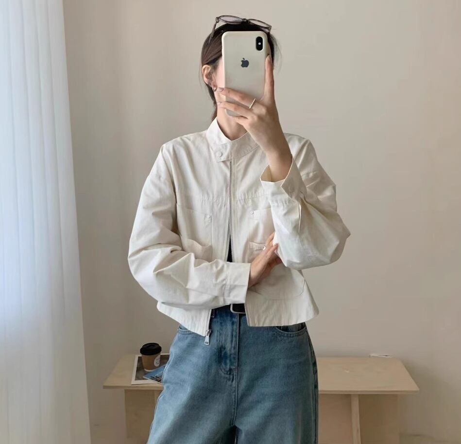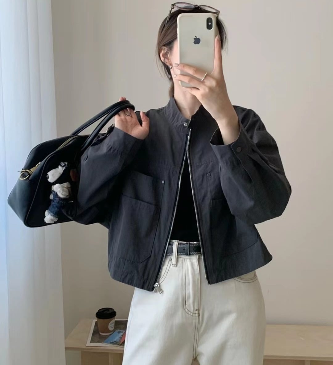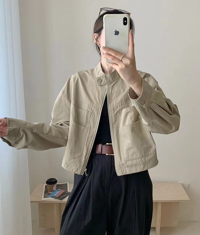 大きめポケット ショート丈 スタンドカラー 長袖 ジャケットのご紹介です!