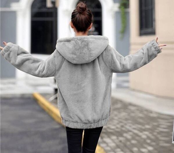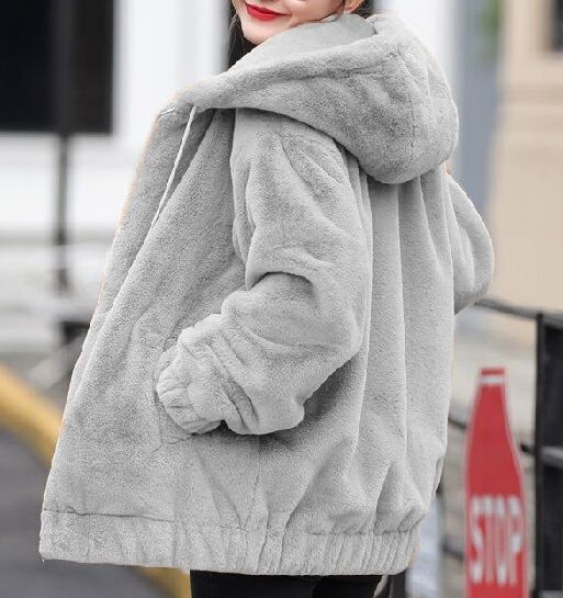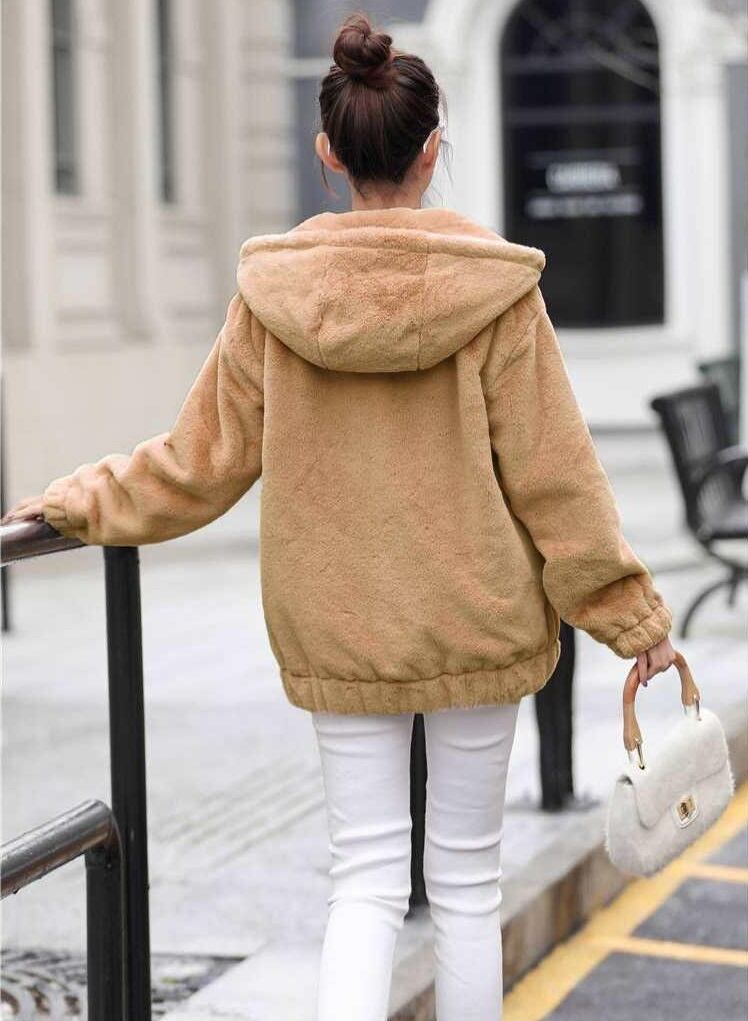 この「フード付き もこもこ ジップアップ ジャケット」は、かわいらしくおしゃれなデザインが魅力のアイテムです!柔らかなラビットファー素材が心地よい暖かさを提供し、春秋冬の季節にぴったりです。オーバーサイズのゆったりとしたシルエットは体型カバーにも優れ、普段使いからデート、お出かけ、公園散歩まで幅広いシーンに最適です!