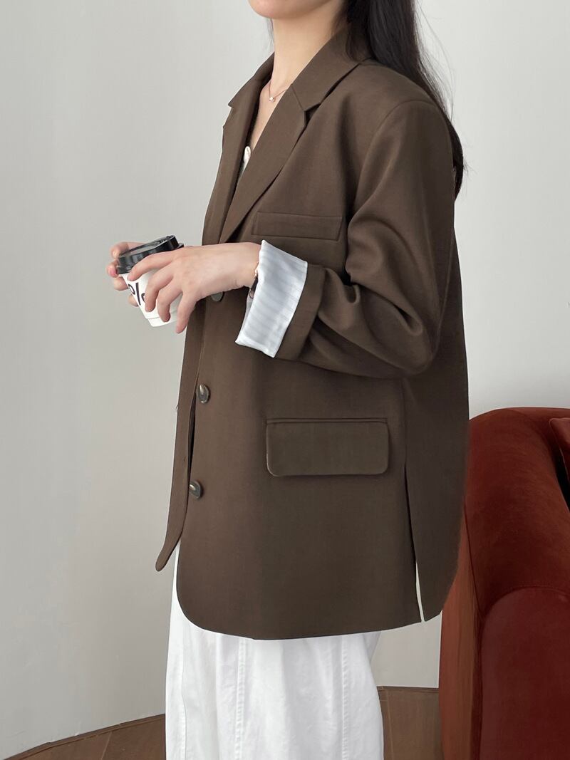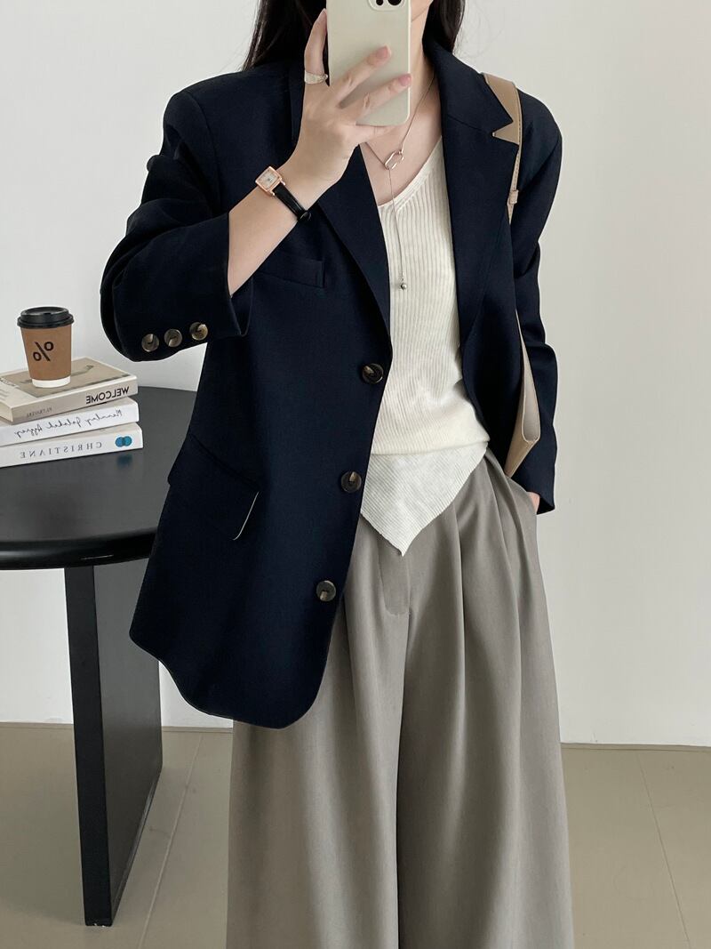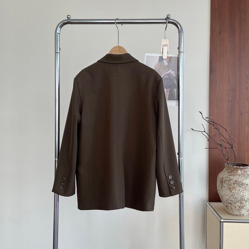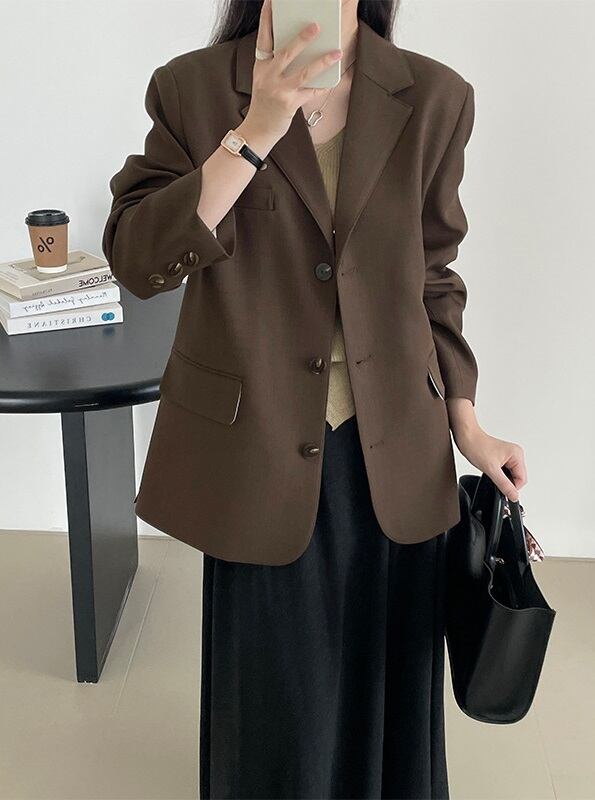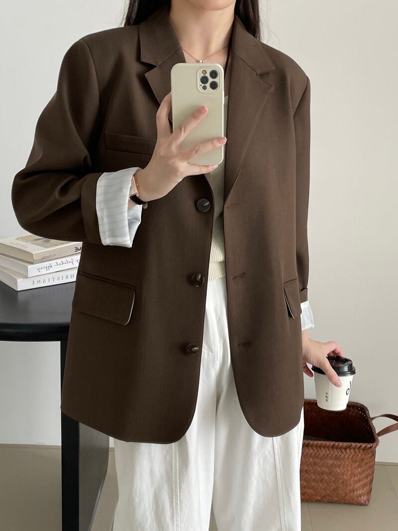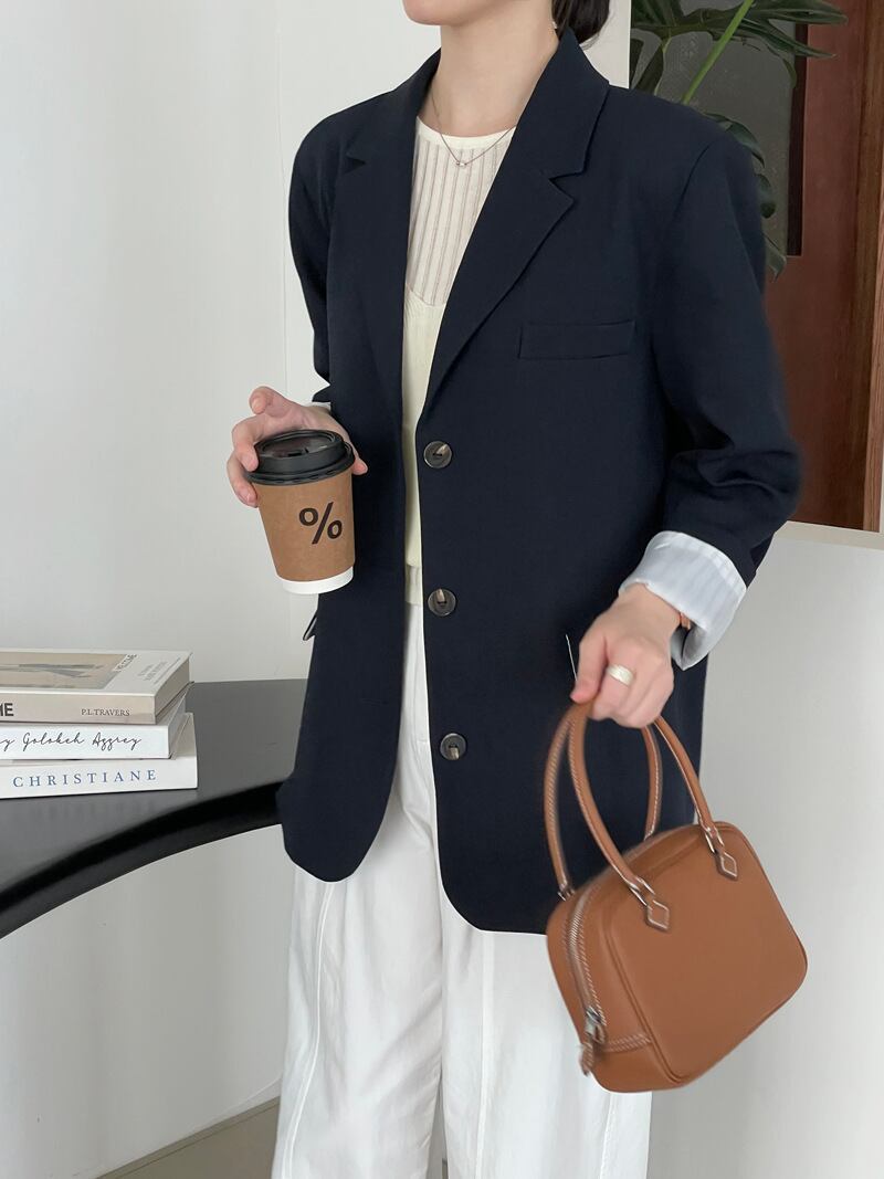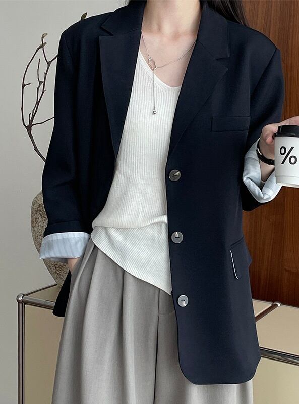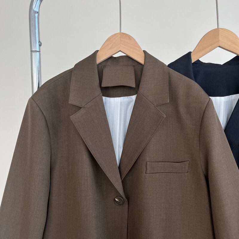 オーバーサイズ 長袖 テーラードジャケット レディース トップス ジャケット スーツ アウター 上着 羽織 丈長 ミディアム 長袖 Vネック 襟付き ポケット 前開き ボタン かわいい 大人可愛い きれいめ シンプル カジュアル 上品 おしゃれ こなれ感 ルーズ 無地 春 秋 冬 授業参観 ママ 通勤 学生 学校 通学 デート お出かけ 旅行 公園 女子会 休日 ショッピング カフェ 重ね着 韓国 オルチャン 体型カバー 普段使い 着回し レイヤード M L ゆったり ネイビー コーヒーブラウン