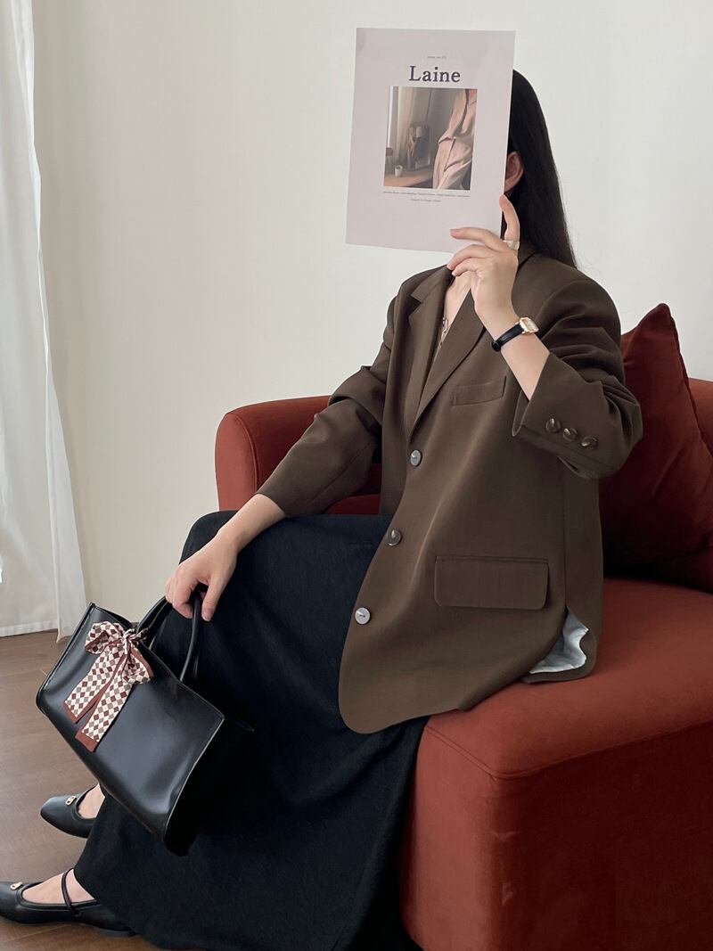 この「オーバーサイズ 長袖 テーラードジャケット」は、大人可愛いスタイルを実現する一着です!丈長のミディアムデザインは春、秋、冬の3シーズンにわたって大活躍。通勤や通学、ママのお出かけ、デート、または休日のショッピングやカフェ利用など、幅広いシーンにぴったりのアイテムです。カジュアルからきれいめなスタイルまで、多彩なコーディネートが楽しめます。
