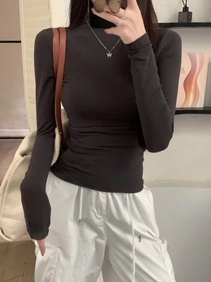この「半ハイネック スリム 長袖 ロンT」は、春秋冬にぴったりな大人可愛いトップスです!細身のシルエットが女性らしいラインを引き立て、シンプルながらもおしゃれな印象を与えます。襟付きスタンドカラーのデザインが、カジュアルシーンにもセクシーさをプラスし、デートやお出かけにも安心して着られます!