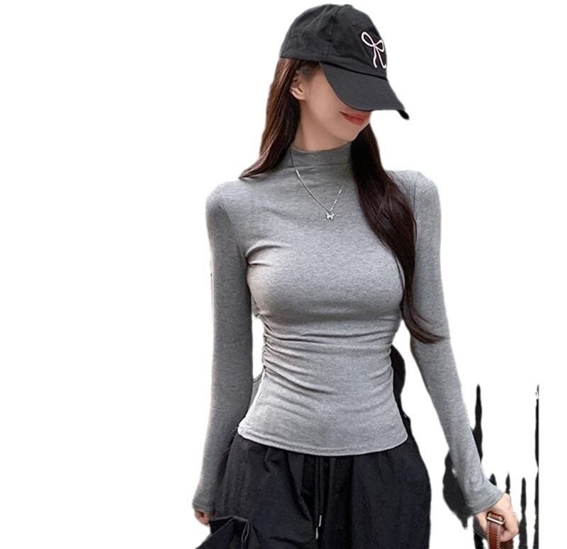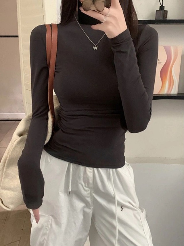 半ハイネック スリム 長袖 ロンT レディース トップス カットソー プルオーバー インナー ミディアム 長袖 襟付き スタンドカラー ハーフハイネック スリム 細身 かわいい 大人可愛い きれいめ シンプル カジュアル おしゃれ こなれ感 ベーシック セクシー 無地 春 秋 冬 ママ 通勤 学生 学校 通学 デート お出かけ 旅行 公園 女子会 休日 ショッピング カフェ 重ね着 暖かい 普段使い 着回し S M L XL 白 ホワイト 黒 ブラック ライトグレー ダークグレー カーキ