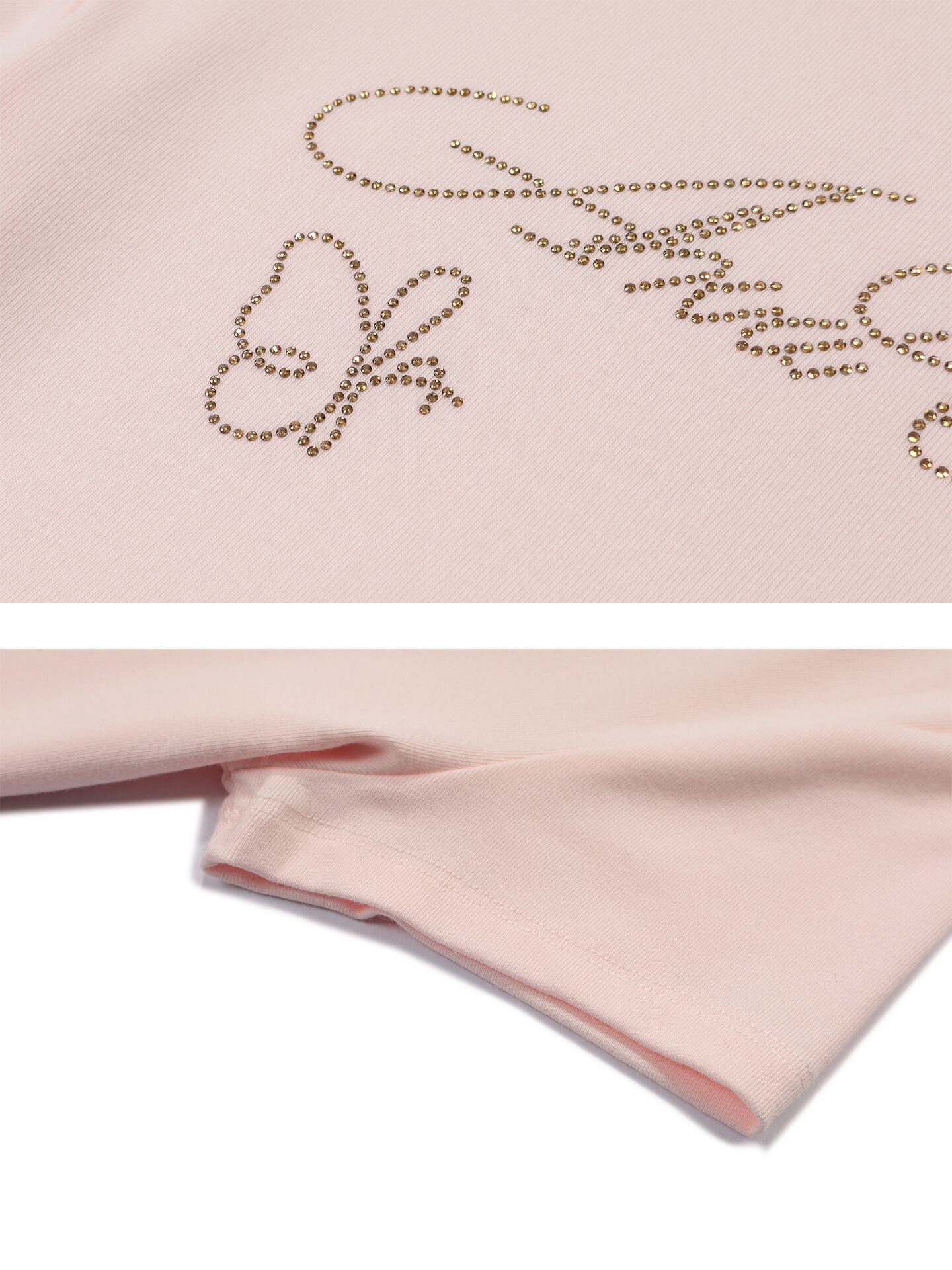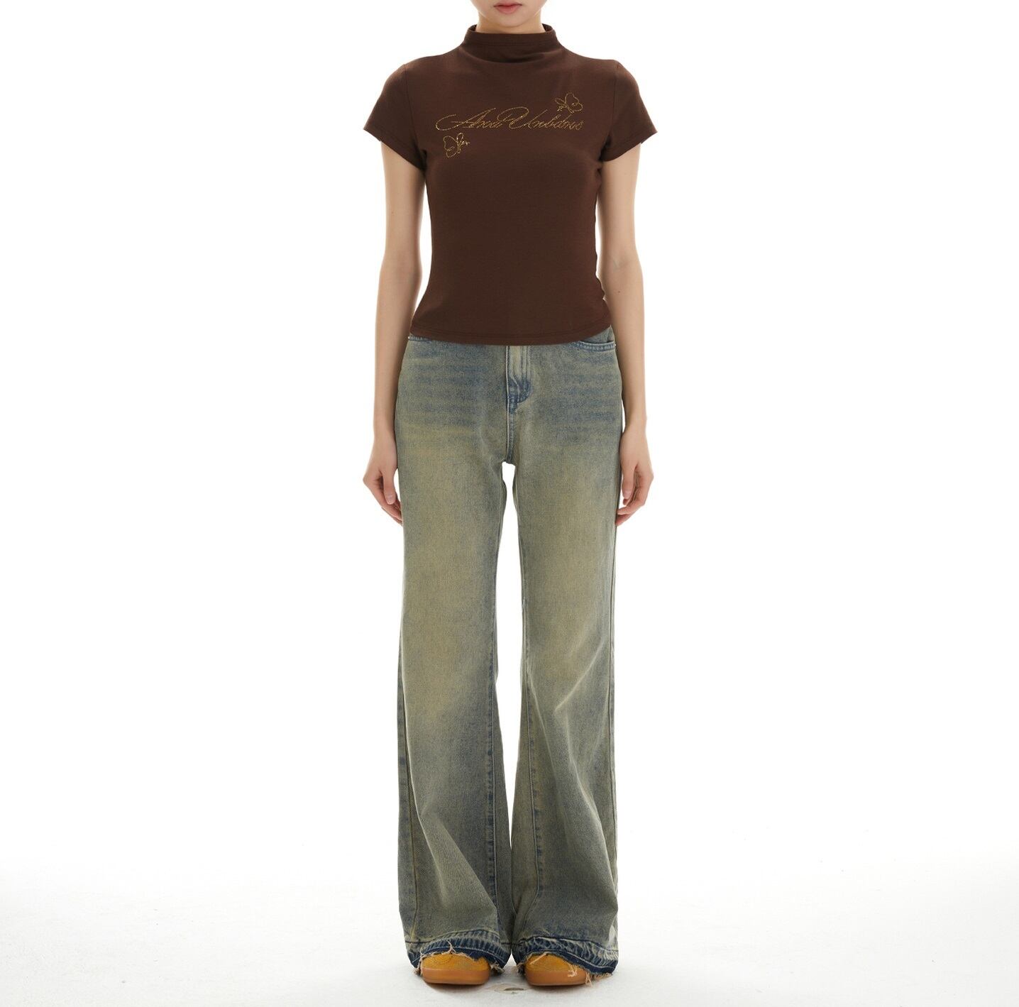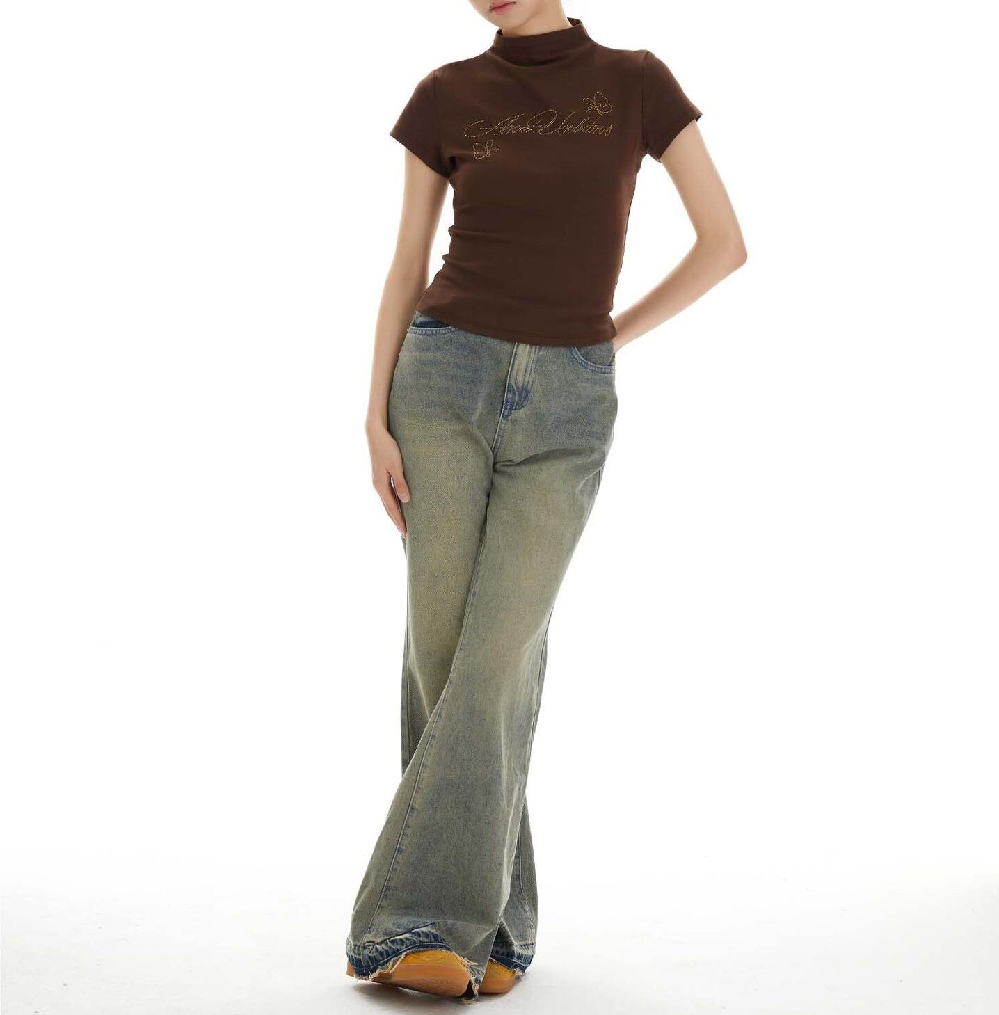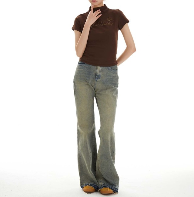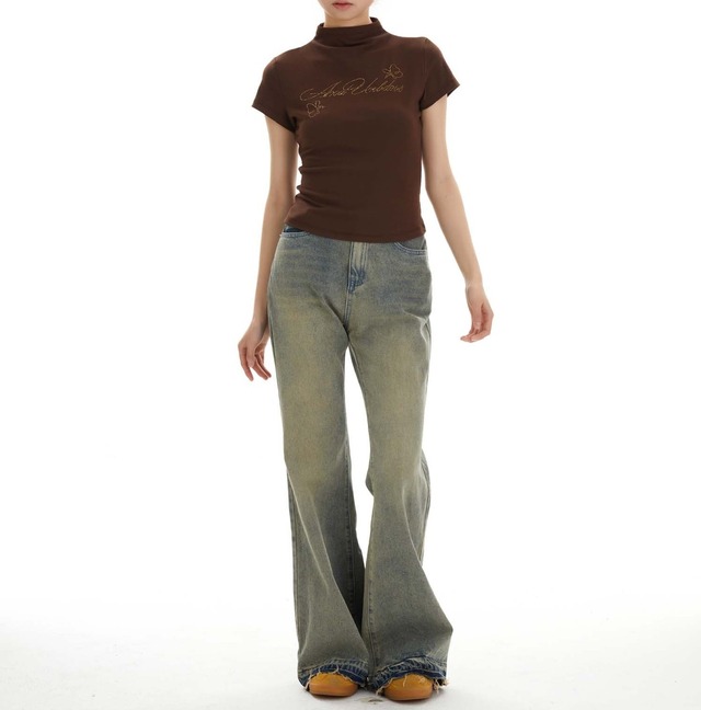 大人可愛いを演出する「ビジュー メッセージ ロゴ 半ハイネック 半袖 Tシャツ」のご案内です!春、夏、秋にぴったりなこのアイテムは、スタンドカラーのデザインが特徴で、シンプルながらもおしゃれな印象を与えます。ビジューの装飾がさりげなく輝き、普段使いから特別なお出かけシーンまで幅広く活躍すること間違いなしです!