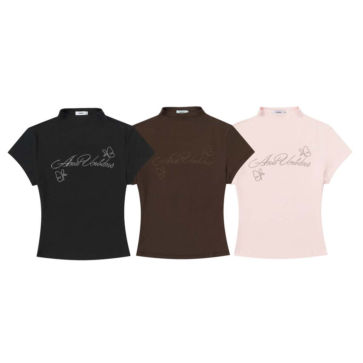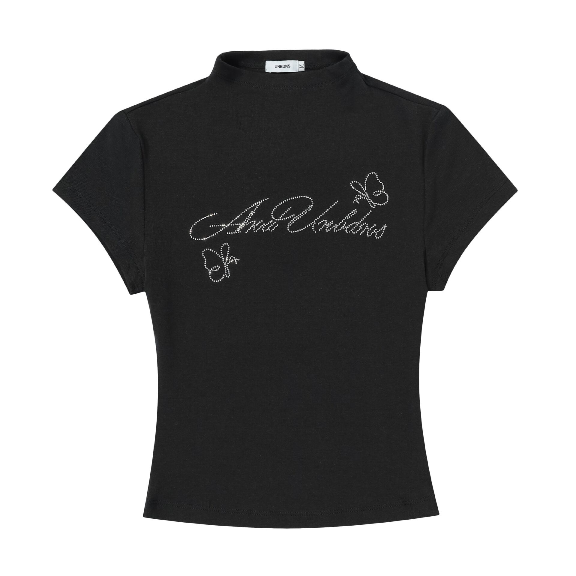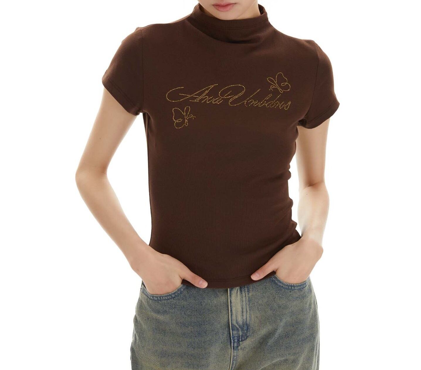 ビジュー メッセージ ロゴ 半ハイネック 半袖 Tシャツ レディース トップス カットソー プルオーバー インナー ショート 半袖 襟付き スタンドカラー ハーフハイネック スリム 細身 ビジュー かわいい 大人可愛い シンプル カジュアル おしゃれ こなれ感 ガーリー 蝶 ロゴ 英字 春 夏 秋 ママ 通勤 学生 学校 通学 デート お出かけ 旅行 公園 女子会 休日 ショッピング カフェ 重ね着 普段使い 着回し S M 黒 ブラック ピンク コーヒーブラウン
