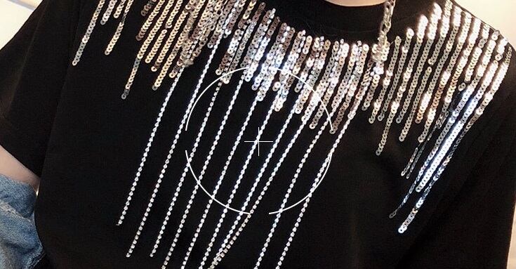 大人可愛いを演出する「スパンコール ラウンドネック 半袖 Tシャツ」のご案内です!春、夏、秋にぴったりのこのアイテムは、ラウンドネックデザインが特徴で、シンプルながらもおしゃれで存在感のある一枚です。スパンコールの装飾が光を受けてキラリと輝き、普段使いはもちろんデートや女子会、ショッピングなど幅広いシーンで活躍すること間違いなしです!