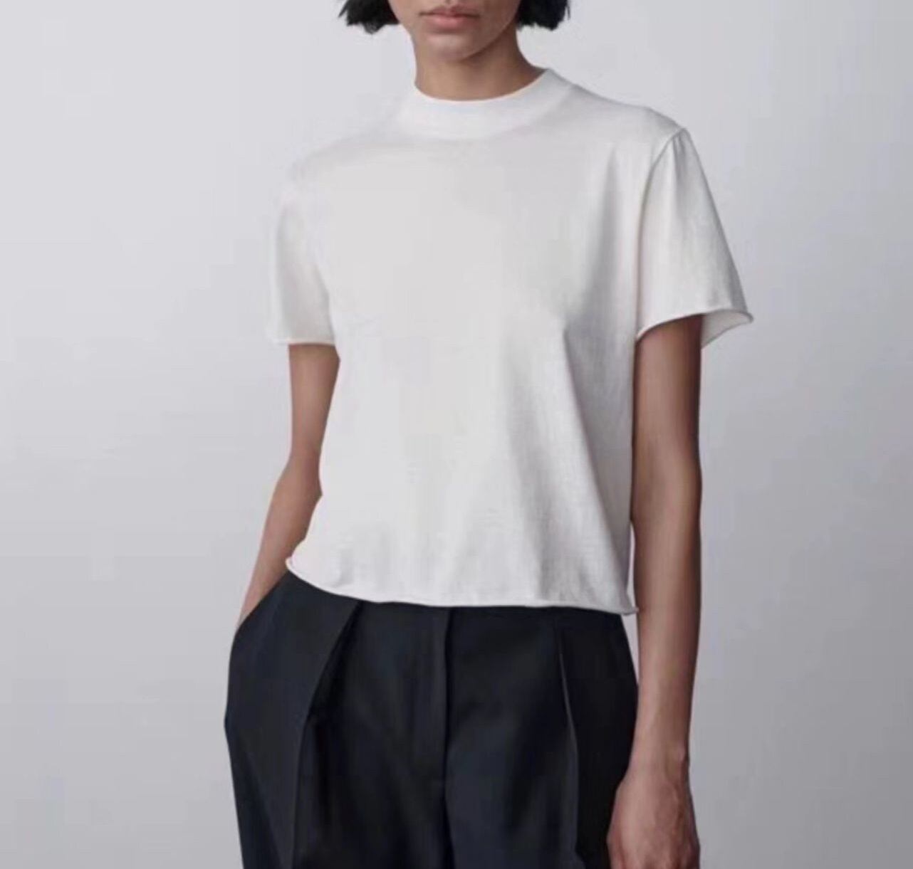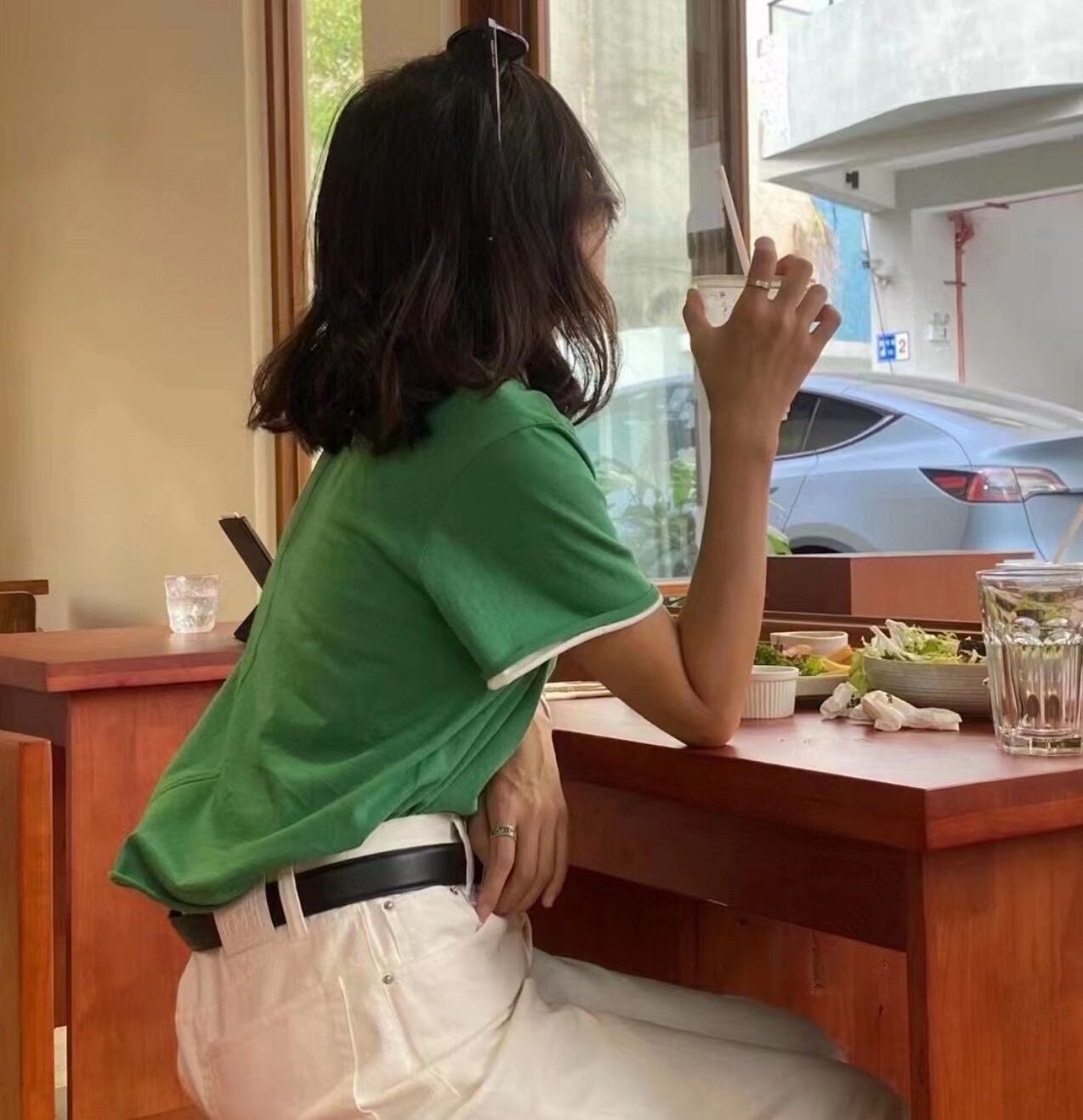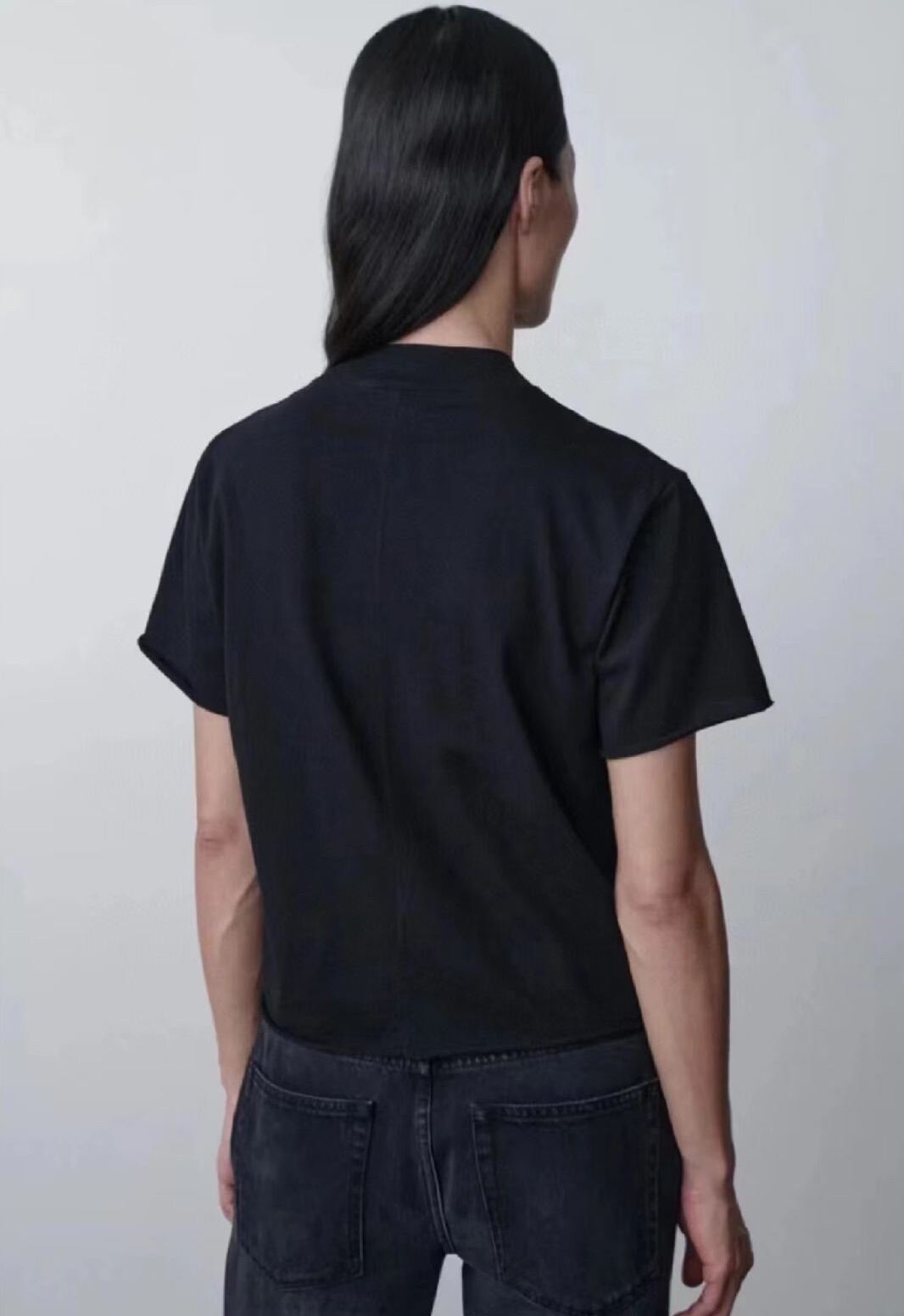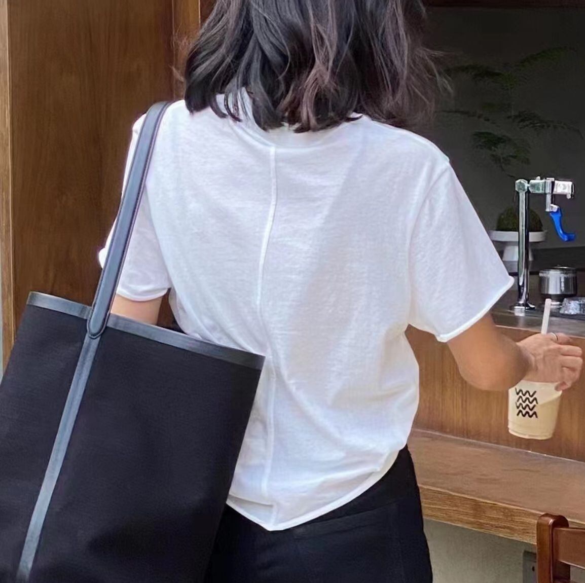 大人可愛いを演出する「背面 切り替え クルーネック シンプル 半袖 Tシャツ」のご案内です!春から秋にかけてのベーシックスタイルにぴったりなこのアイテムは、背面切り替えデザインが特徴で、こなれ感を与えるシンプルでおしゃれな一着です。コットン素材で着心地も良く、普段使いや通勤、デートなどのさまざまなシーンで活躍します!