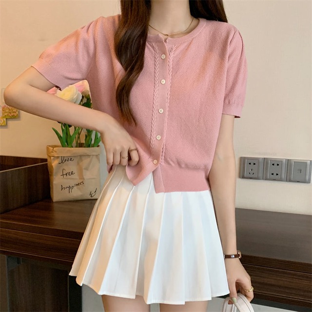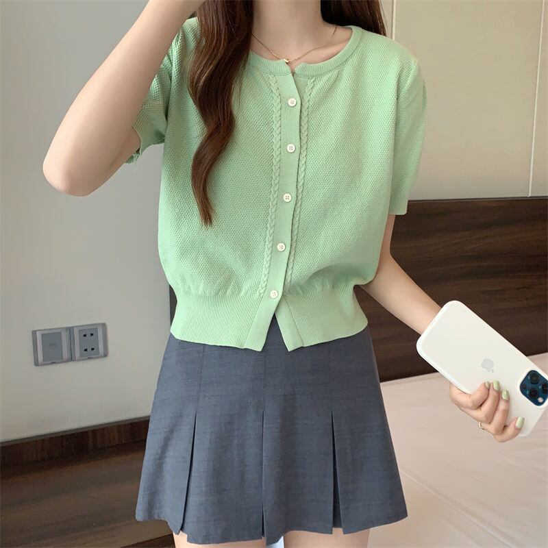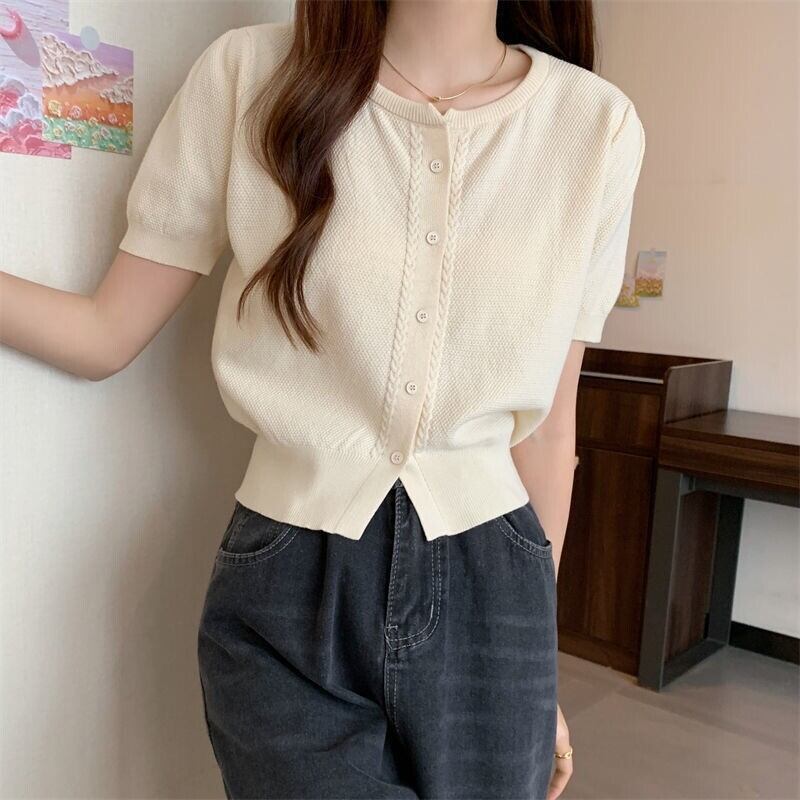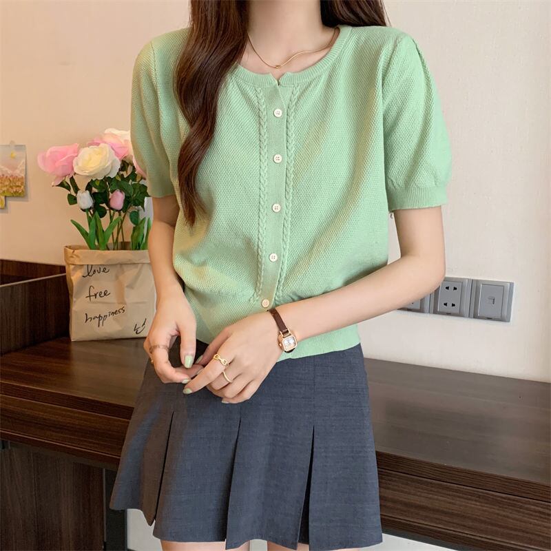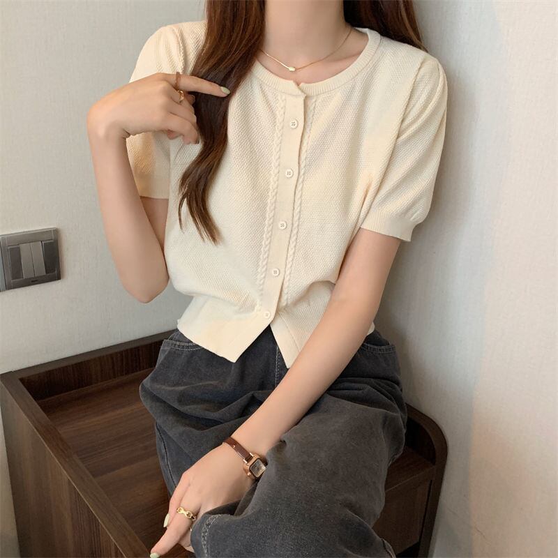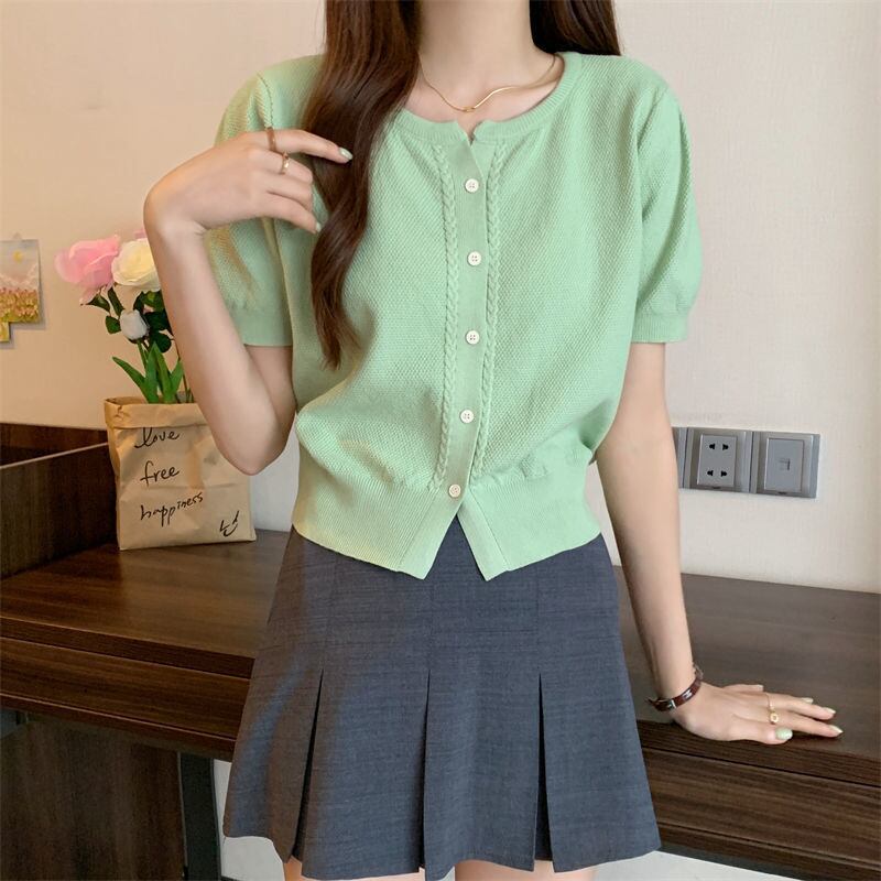 ショート丈 ラウンドネック パフ袖 ニットカーディガン レディース トップス ニット カーディガン 羽織 ショート 半袖 パフスリーブ 襟なし フェミニン リブ 前開き ケーブルニット ボタン かわいい 大人可愛い きれいめ シンプル カジュアル 上品 おしゃれ ガーリー エレガント 無地 春 夏 秋 ママ 通勤 学生 学校 通学 デート お出かけ 旅行 公園 女子会 休日 重ね着 体型カバー 普段使い 着回し レイヤード フリーサイズ 白 ホワイト 黒 ブラック ピンク アプリコット 緑 グリーン