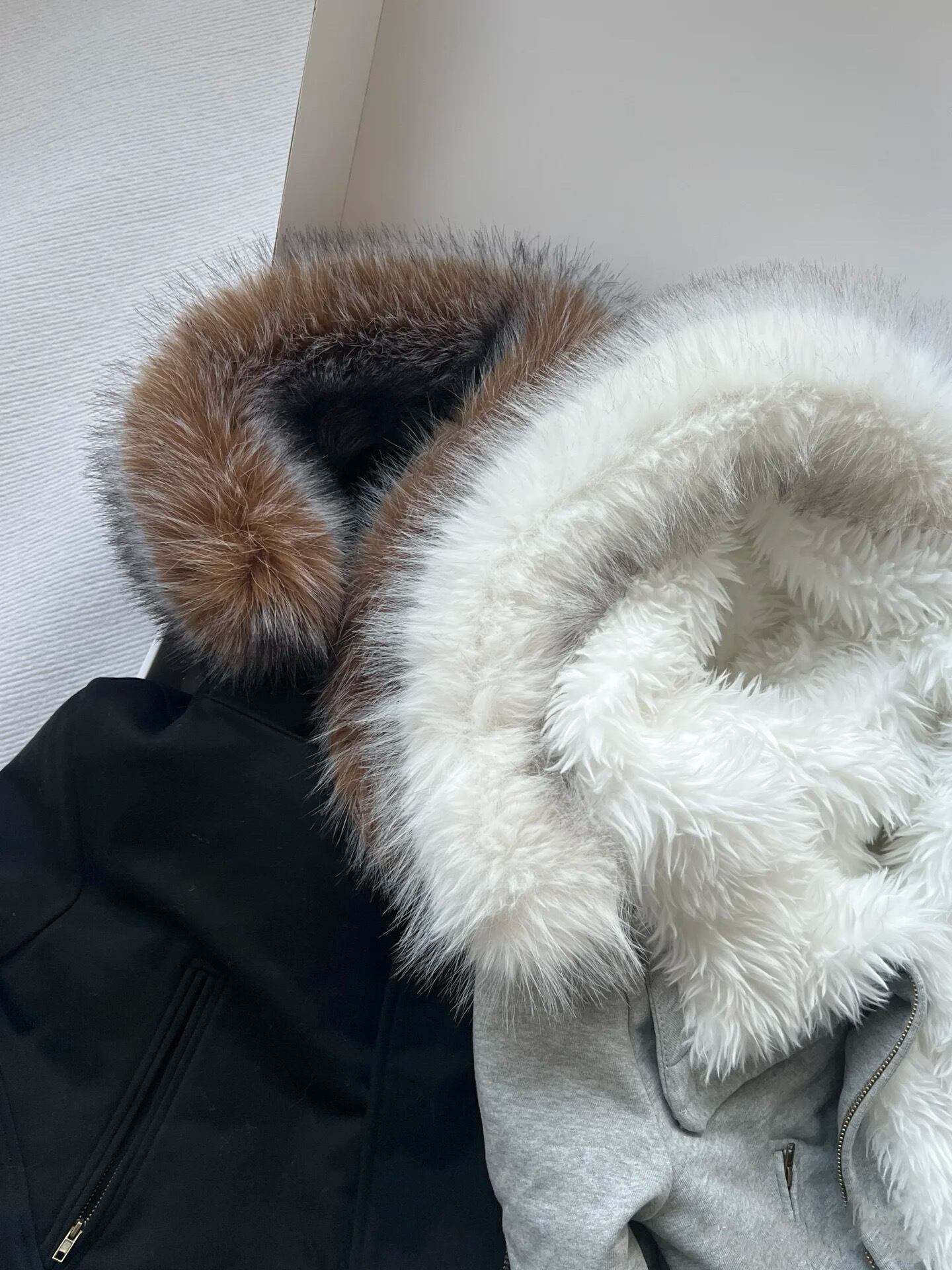 ショート丈 ファー付き ジップアップ ジャケット レディース トップス アウター 上着 羽織 ライダースジャケット ショート 長袖 フード ふわふわ ファスナー ポケット 前開き ファー 裏起毛 かわいい 大人可愛い シンプル カジュアル おしゃれ かっこいい こなれ感 クール 存在感 無地 春 秋 冬 ママ 通勤 学生 学校 通学 デート お出かけ 旅行 公園 女子会 休日 ツーリング 重ね着 暖かい 防寒 体型カバー 普段使い 着回し S M L 黒 ブラック グレー ネイビー