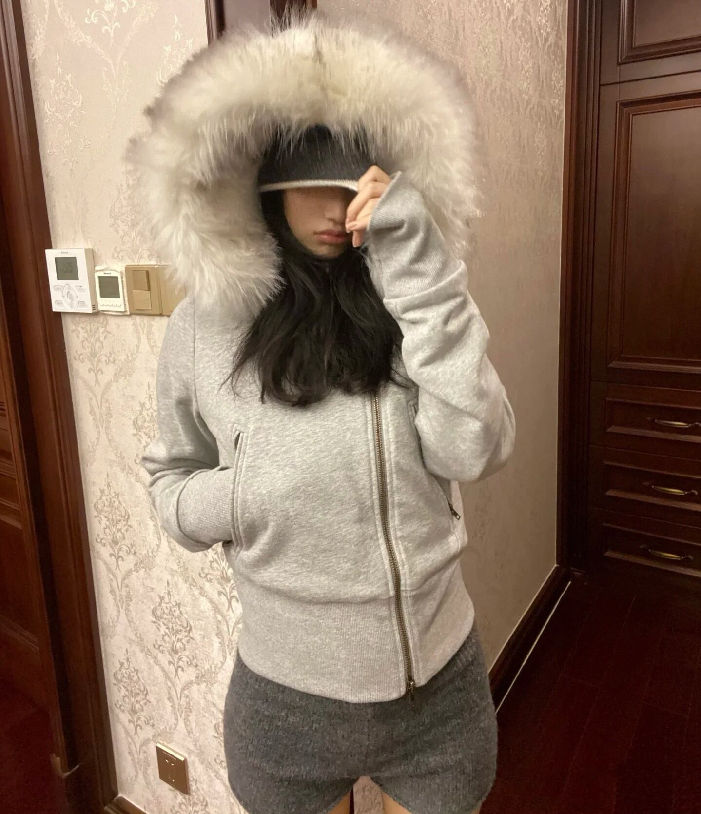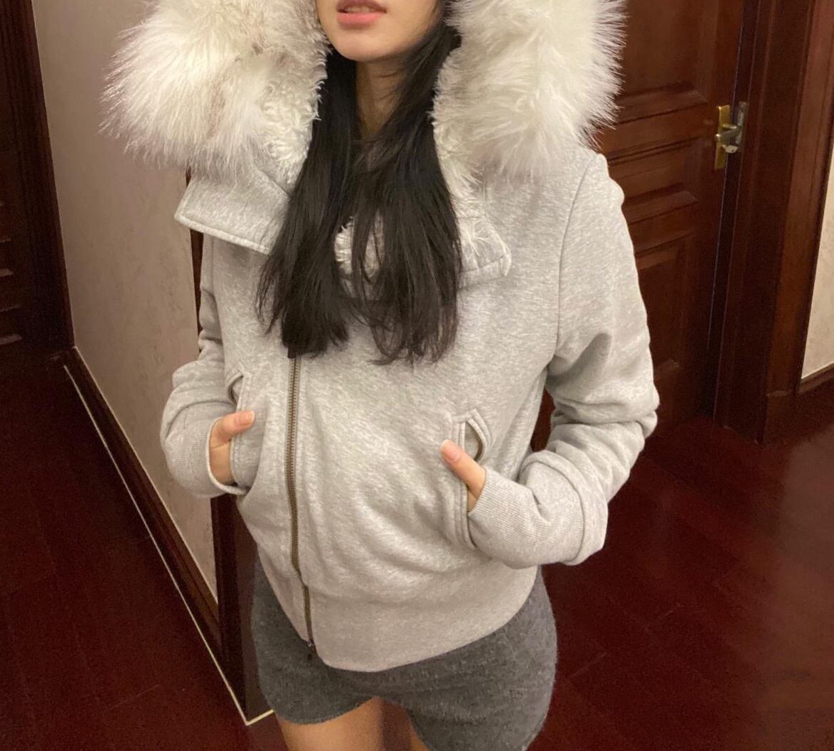 大人可愛いを演出する「ショート丈 ファー付き ジップアップ ジャケット」のご紹介です!このアイテムは、カジュアルでありながらもおしゃれで存在感抜群のデザインが魅力。ふわふわのファー付きフードがアクセントになり、裏起毛で暖かさもお約束します!春、秋、冬の3シーズンにわたり幅広く活躍し、普段使いや通勤・学校、お出かけやデートまで、さまざまなシーンにマッチします。