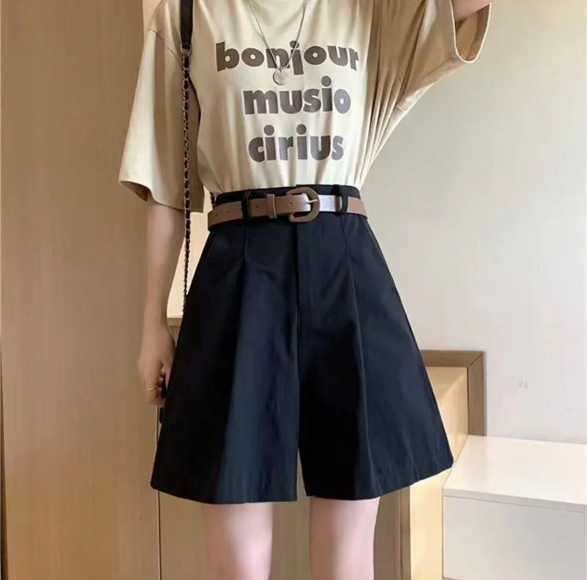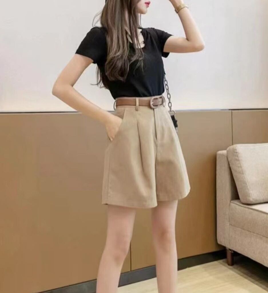 大人可愛いを演出する「ベルト付き ハイウエスト タック入り ショートパンツ」のご紹介です!このアイテムは、シンプルでありながらおしゃれなデザインが魅力で、ハイウエストのスタイルは脚長効果も抜群!タックプリーツ入りで、体型を美しくカバーしつつ、カジュアルからきれいめまで幅広いスタイルに対応します。普段使いから通勤、学び舎、デート、お出かけ、旅行まで、あらゆるシーンで活躍すること間違いなしです!