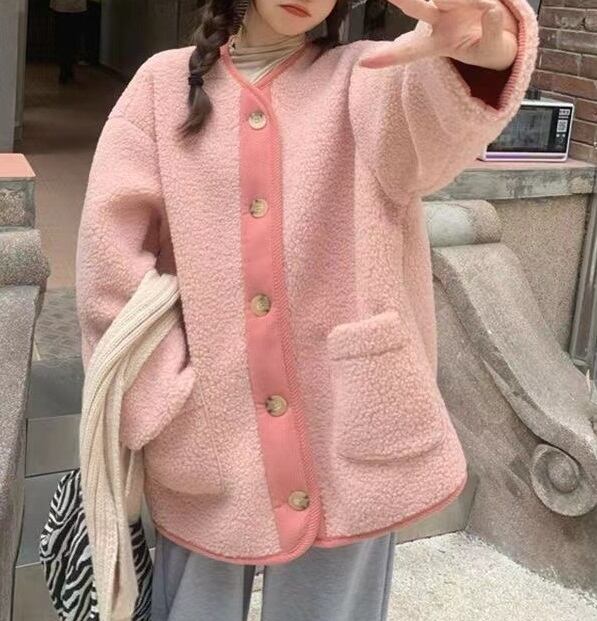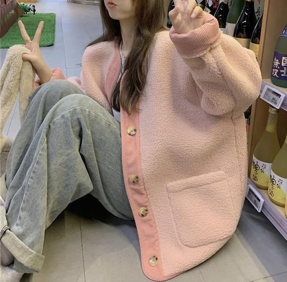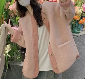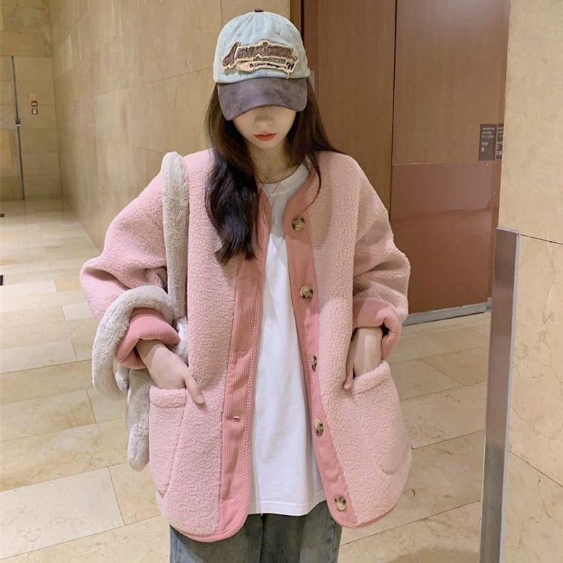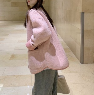 ノーカラー ドロップショルダー ボアジャケット コート レディース トップス ジャケット アウター 上着 羽織 丈長 長袖 ラウンドネック 襟なし オーバーサイズ もこもこ ふわふわ ポケット 前開き バイカラー ボア かわいい 大人可愛い きれいめ シンプル カジュアル おしゃれ こなれ感 キュート 無地 春 秋 冬 ママ 通勤 学生 学校 通学 デート お出かけ 旅行 公園 女子会 休日 重ね着 韓国 暖かい 体型カバー 普段使い 着回し M L XL ゆったり ピンク ブルー アプリコット